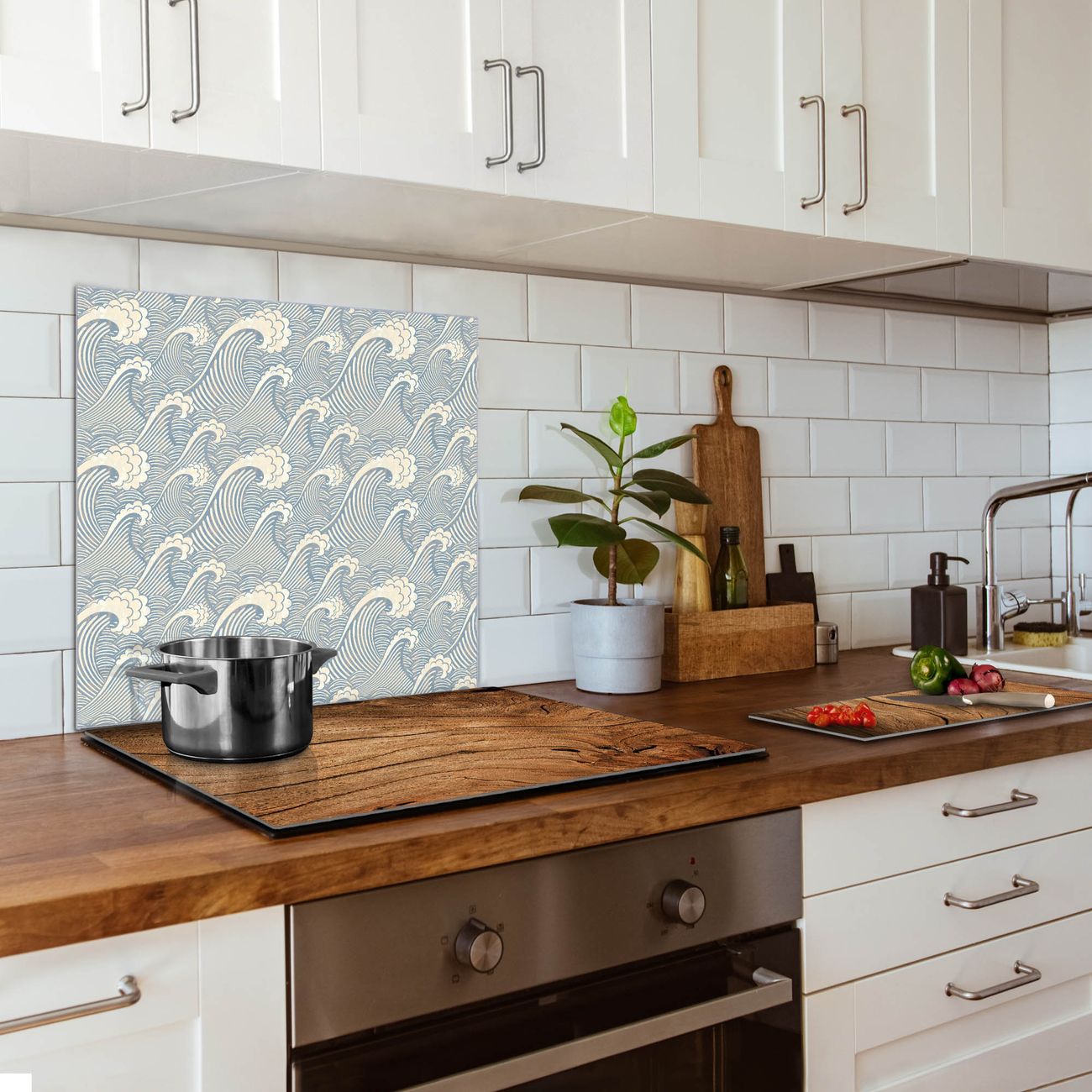 Küchenrückwand Glas Motiv Blaue Wellen