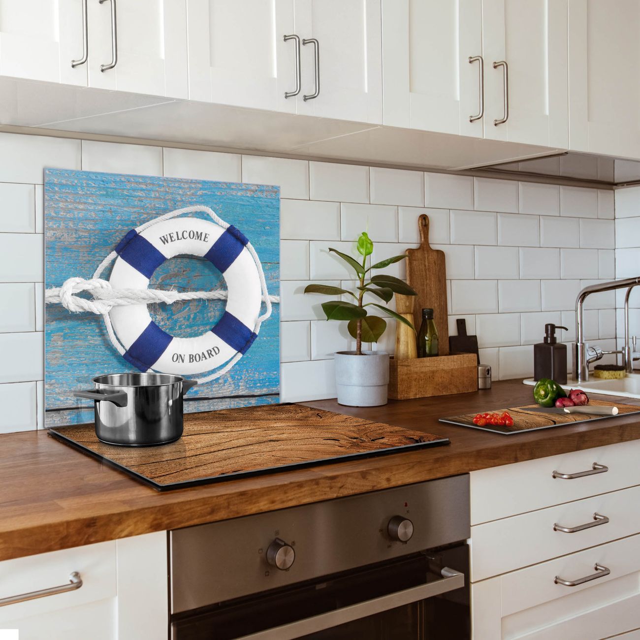 Küchenrückwand Glas Motiv Blauer Rettungsring