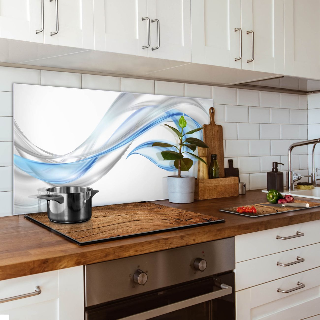 Die banjado Glas Küchenrückwand in verschiedenen Größen mit Motiv Blauer Schleier schützt Ihre Küchenfliesen vor Fettspritzern oder Wasserflecken. Der Spritzschutz ist gleichzeitig magnetisch und hält Ihre Rezepte oder Einkaufslisten. 4 Neodym-Magnete und 1 Kreidestift liegen bereits bei. Leuchtende Motive und hochwertiges Material machen den Spritzschutz zum Designobjekt. Das dekorative Glasbild gibt Ihrer Küche ein individuelles Erscheinungsbild. Abgerundete Kanten und Sicherheitsglas sorgen für einen sicheren Einsatz.
