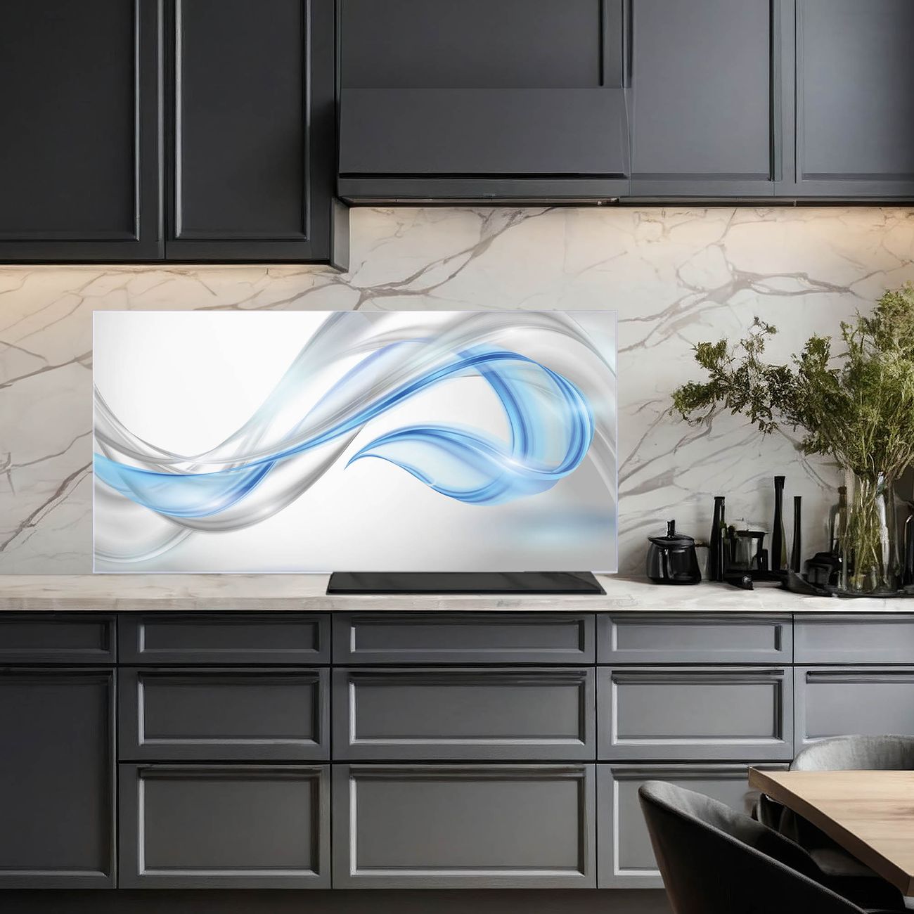 Küchenrückwand Glas Motiv Blauer Schleier