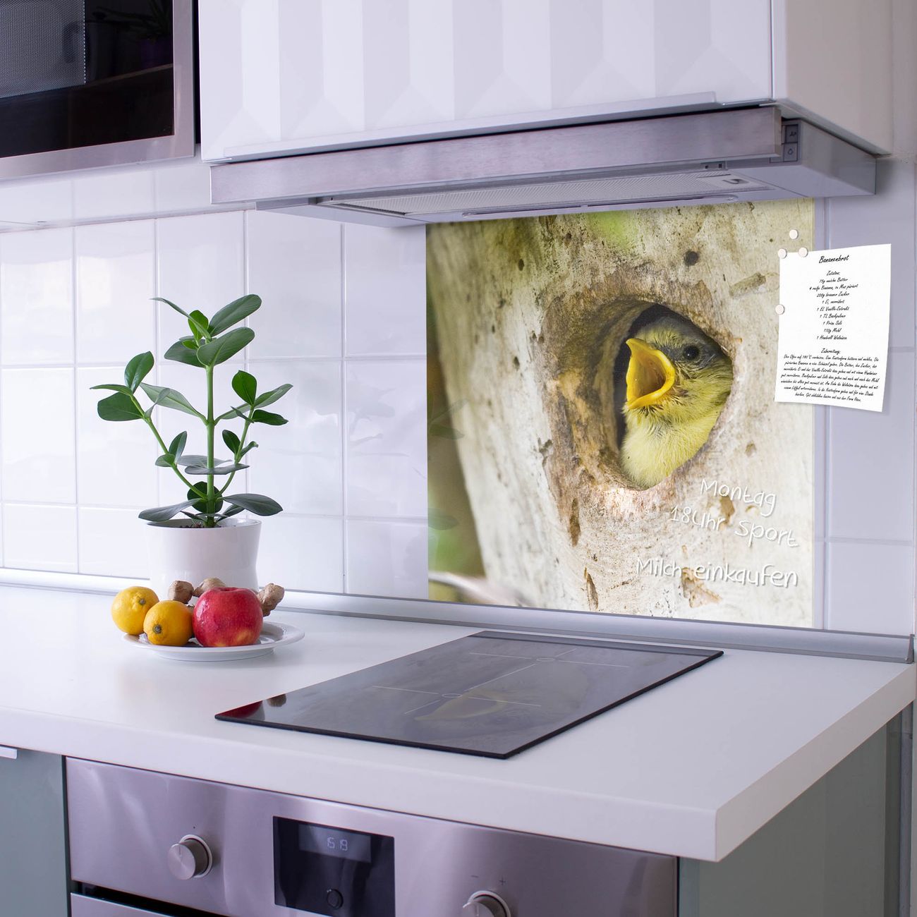 Die Küchenrückwand ist eine elegante Mehrzwecktafel: als Spritzschutz hinter Herd oder Waschbecken, hält Notizen wie ein Memoboard, ist beschreibbar mit Kreidestiften oder Whiteboard-Markern, sieht umwerfend als Glasbild aus. Sie besteht aus gehärtetem Glas, die Rückwand aus einem magnetischen Stahlblech. Durch die superflache Bauweise haben Sie die Wahl aus einer Vielzahl von Befestigungsmöglichkeiten. Sie können die Küchenrückwand mit einem Montagekleber superflach an die Wand kleben oder Sie wählen eines unserer passenden Befestigungssets, welches eine optimale Montage garantiert. Die Küchenrückwand besteht aus zertifiziertem Sicherheitsglas. Durch die mitgelieferten 4 Neodym-Magnete ist Ihre Glas Magnettafel sofort einsatzbereit.