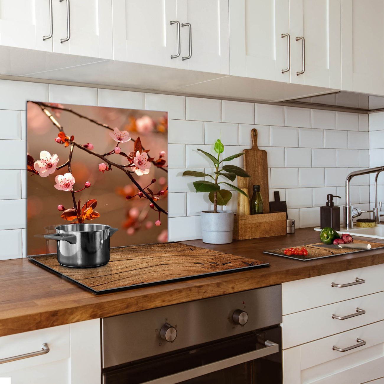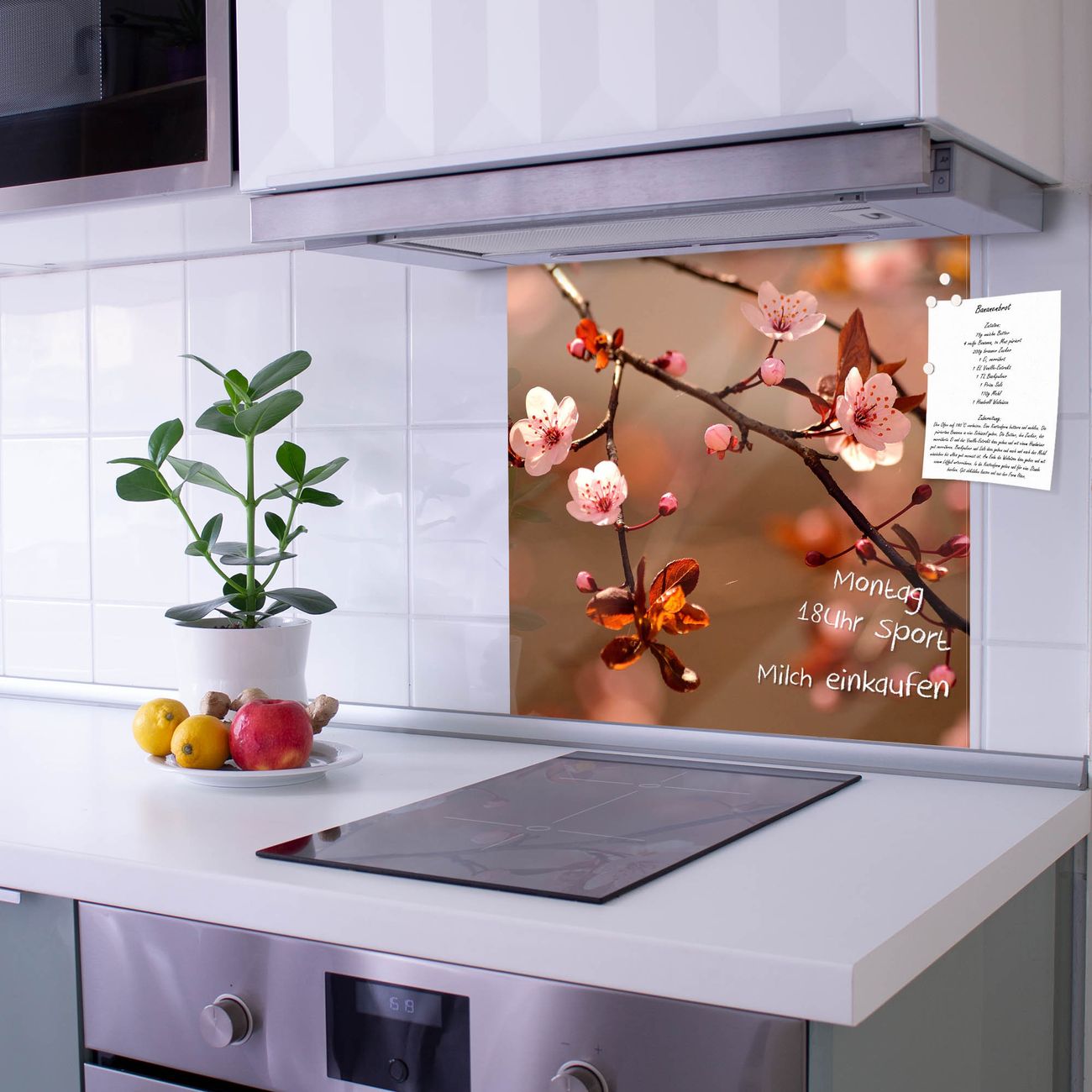 Die banjado Glas Küchenrückwand in verschiedenen Größen mit Motiv Blühender Kirschzweig schützt Ihre Küchenfliesen vor Fettspritzern oder Wasserflecken. Der Spritzschutz ist gleichzeitig magnetisch und hält Ihre Rezepte oder Einkaufslisten. 4 Neodym-Magnete und 1 Kreidestift liegen bereits bei. Leuchtende Motive und hochwertiges Material machen den Spritzschutz zum Designobjekt. Das dekorative Glasbild gibt Ihrer Küche ein individuelles Erscheinungsbild. Abgerundete Kanten und Sicherheitsglas sorgen für einen sicheren Einsatz.