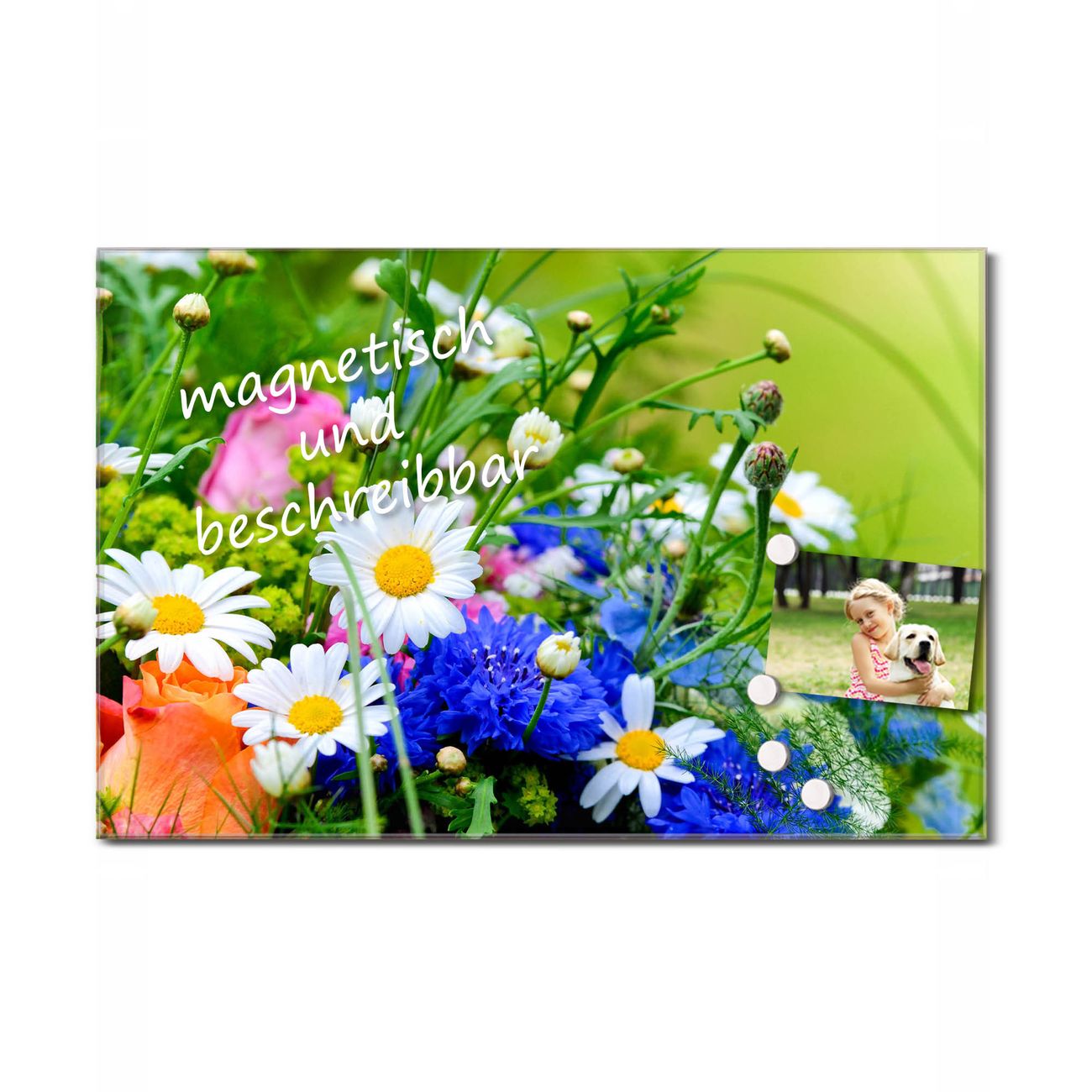 Bitte beachten Sie, dass ausschließlich spezielle Magnete an der Glastafel haften! Wir empfehlen banjado Neodym Magnete, diese sind durch uns auf Wirksamkeit geprüft.