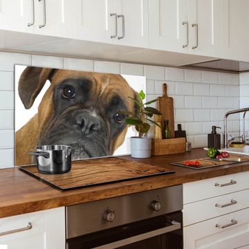 Die banjado Glas Küchenrückwand in verschiedenen Größen mit Motiv Boxer schützt Ihre Küchenfliesen vor Fettspritzern oder Wasserflecken. Der Spritzschutz ist gleichzeitig magnetisch und hält Ihre Rezepte oder Einkaufslisten. 4 Neodym-Magnete und 1 Kreidestift liegen bereits bei. Leuchtende Motive und hochwertiges Material machen den Spritzschutz zum Designobjekt. Das dekorative Glasbild gibt Ihrer Küche ein individuelles Erscheinungsbild. Abgerundete Kanten und Sicherheitsglas sorgen für einen sicheren Einsatz.