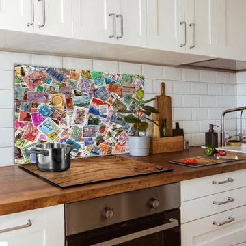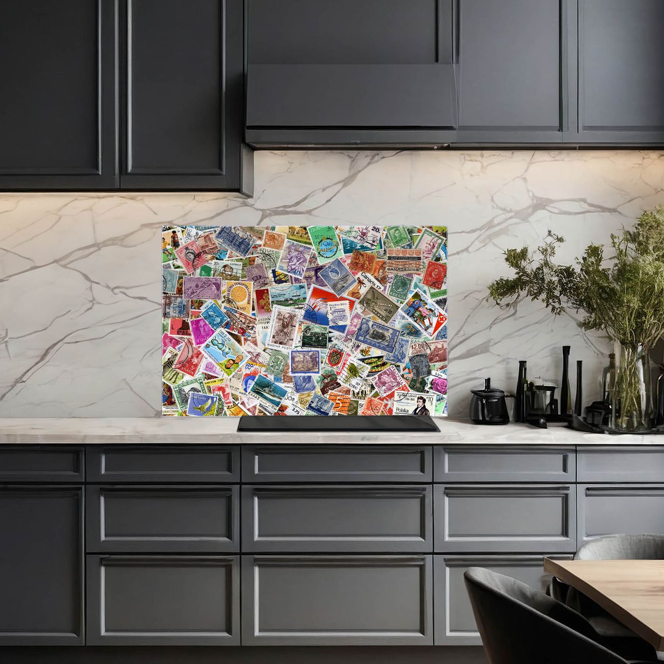 Die banjado Glas Küchenrückwand in verschiedenen Größen mit Motiv Briefmarken schützt Ihre Küchenfliesen vor Fettspritzern oder Wasserflecken. Der Spritzschutz ist gleichzeitig magnetisch und hält Ihre Rezepte oder Einkaufslisten. 4 Neodym-Magnete und 1 Kreidestift liegen bereits bei. Leuchtende Motive und hochwertiges Material machen den Spritzschutz zum Designobjekt. Das dekorative Glasbild gibt Ihrer Küche ein individuelles Erscheinungsbild. Abgerundete Kanten und Sicherheitsglas sorgen für einen sicheren Einsatz.