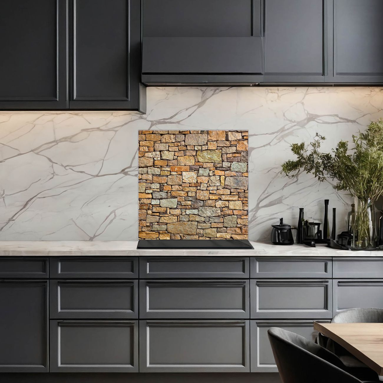 Die banjado Glas Küchenrückwand in verschiedenen Größen mit Motiv Bruchsteinmauer schützt Ihre Küchenfliesen vor Fettspritzern oder Wasserflecken. Der Spritzschutz ist gleichzeitig magnetisch und hält Ihre Rezepte oder Einkaufslisten. 4 Neodym-Magnete und 1 Kreidestift liegen bereits bei. Leuchtende Motive und hochwertiges Material machen den Spritzschutz zum Designobjekt. Das dekorative Glasbild gibt Ihrer Küche ein individuelles Erscheinungsbild. Abgerundete Kanten und Sicherheitsglas sorgen für einen sicheren Einsatz.