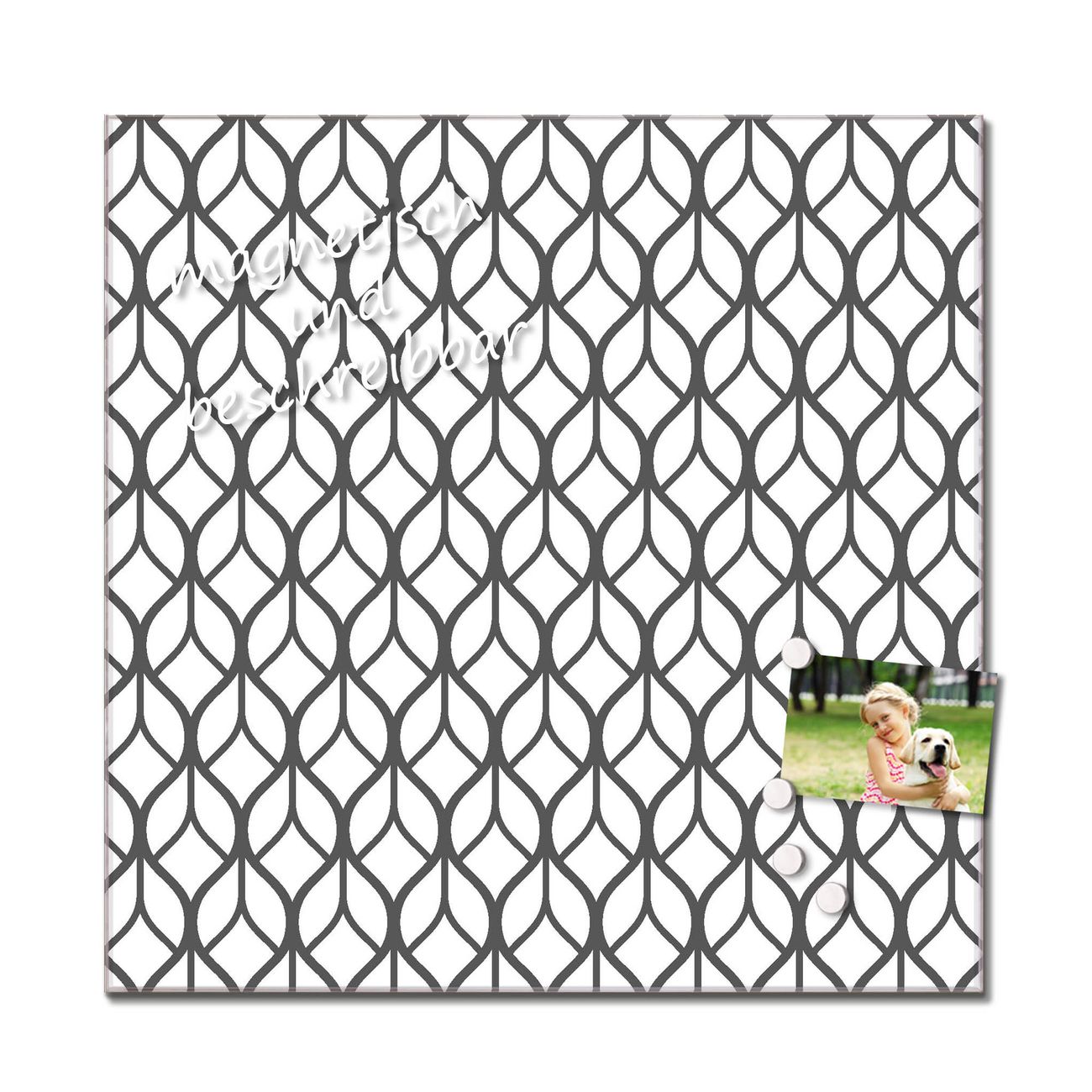 Bitte beachten Sie, dass ausschließlich spezielle Magnete an der Glastafel haften! Wir empfehlen banjado Neodym Magnete, diese sind durch uns auf Wirksamkeit geprüft.
