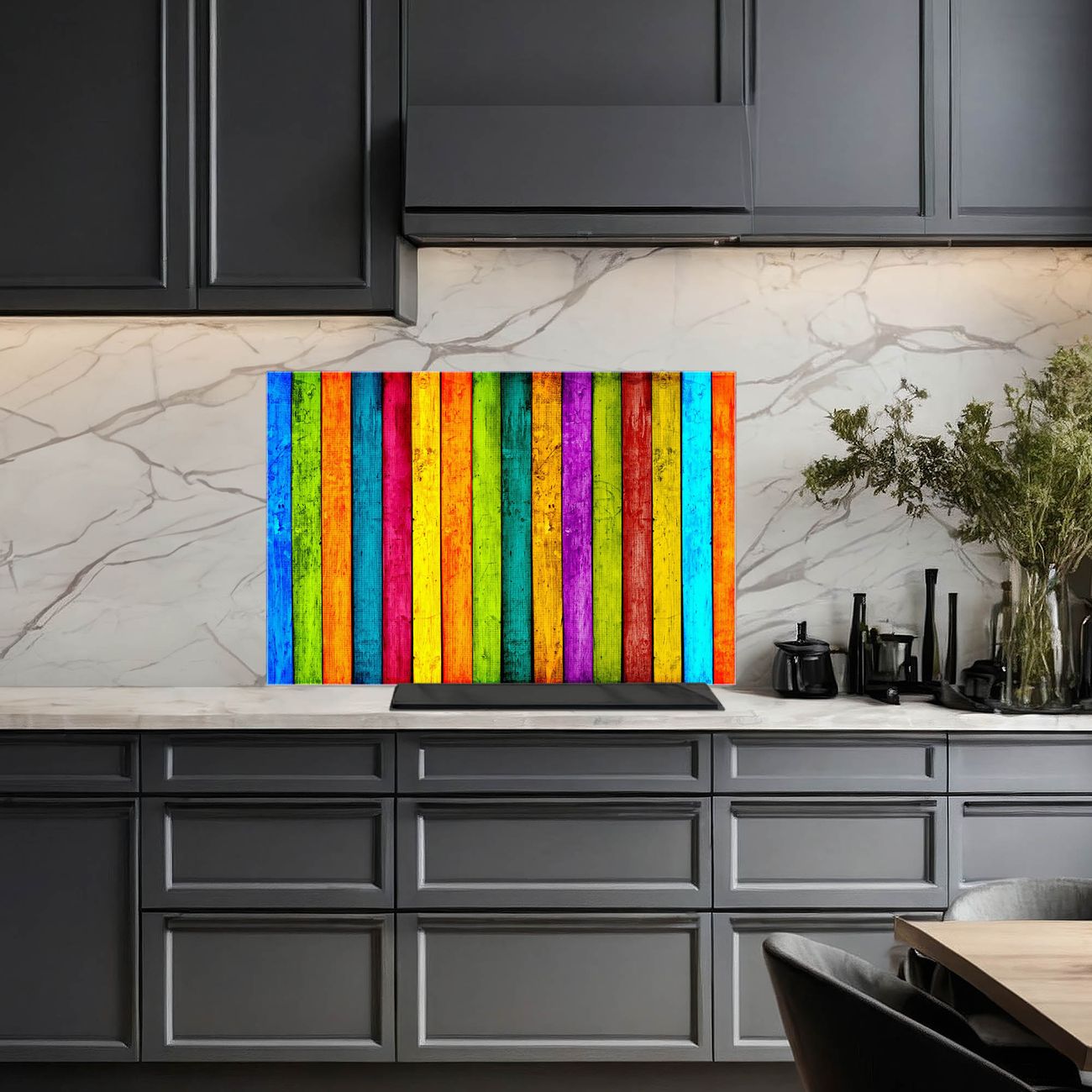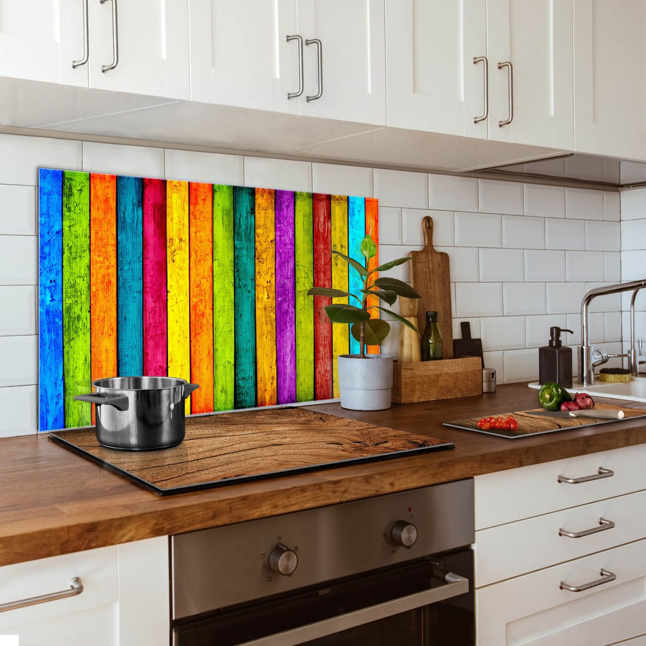 Küchenrückwand Glas Motiv Bunte Holzlatten