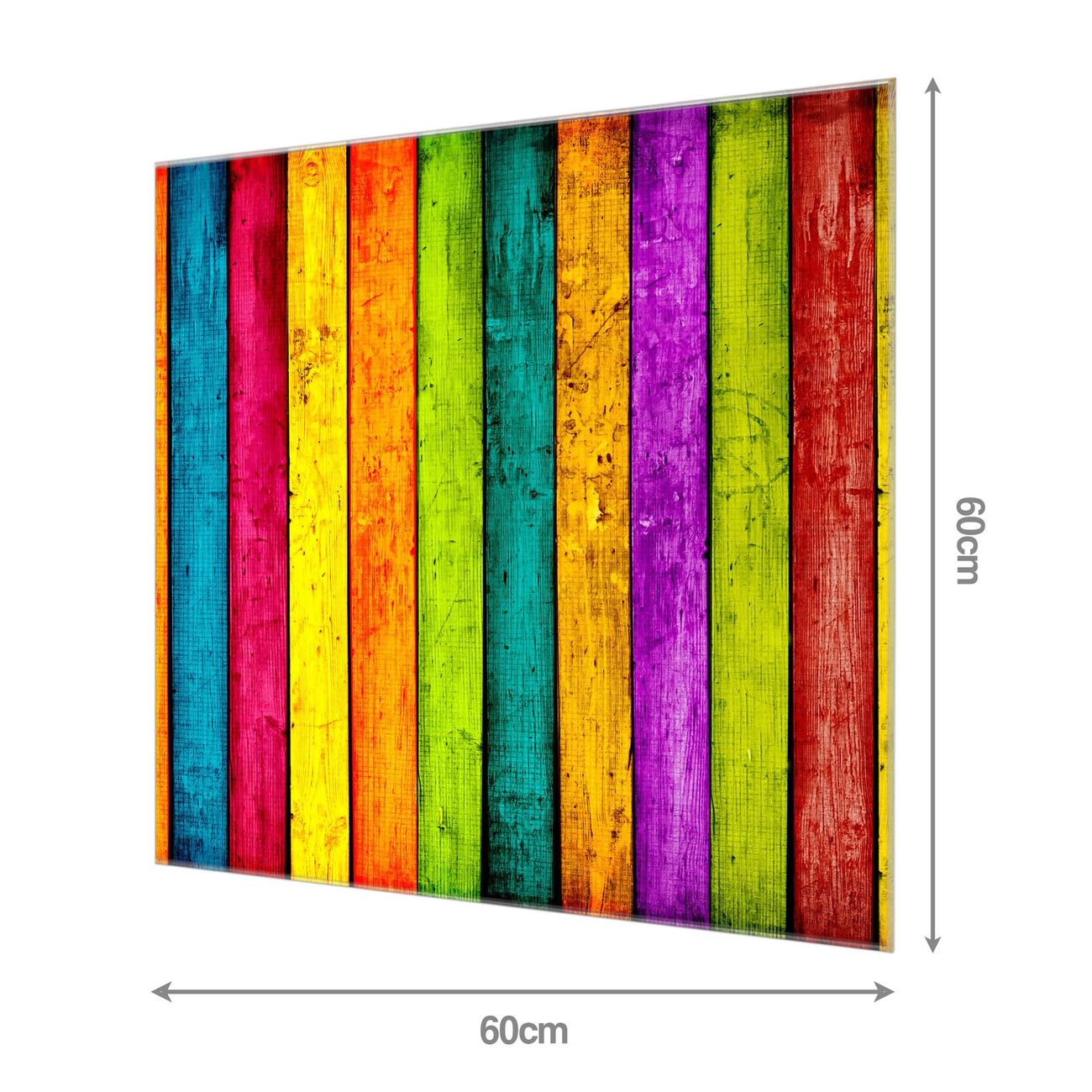 Die banjado Glas Küchenrückwand in verschiedenen Größen mit Motiv Bunte Holzlatten schützt Ihre Küchenfliesen vor Fettspritzern oder Wasserflecken. Der Spritzschutz ist gleichzeitig magnetisch und hält Ihre Rezepte oder Einkaufslisten. 4 Neodym-Magnete und 1 Kreidestift liegen bereits bei. Leuchtende Motive und hochwertiges Material machen den Spritzschutz zum Designobjekt. Das dekorative Glasbild gibt Ihrer Küche ein individuelles Erscheinungsbild. Abgerundete Kanten und Sicherheitsglas sorgen für einen sicheren Einsatz.