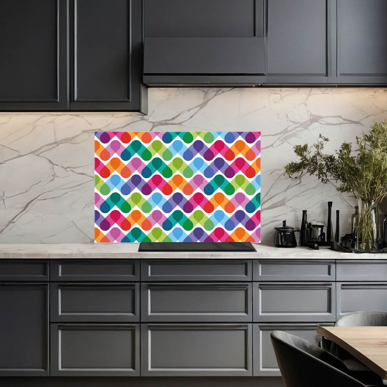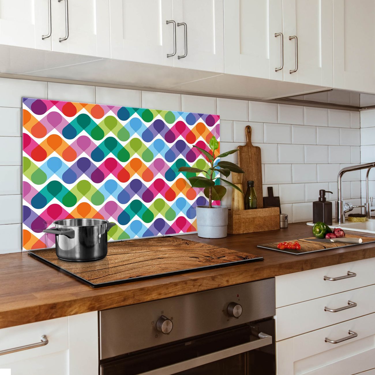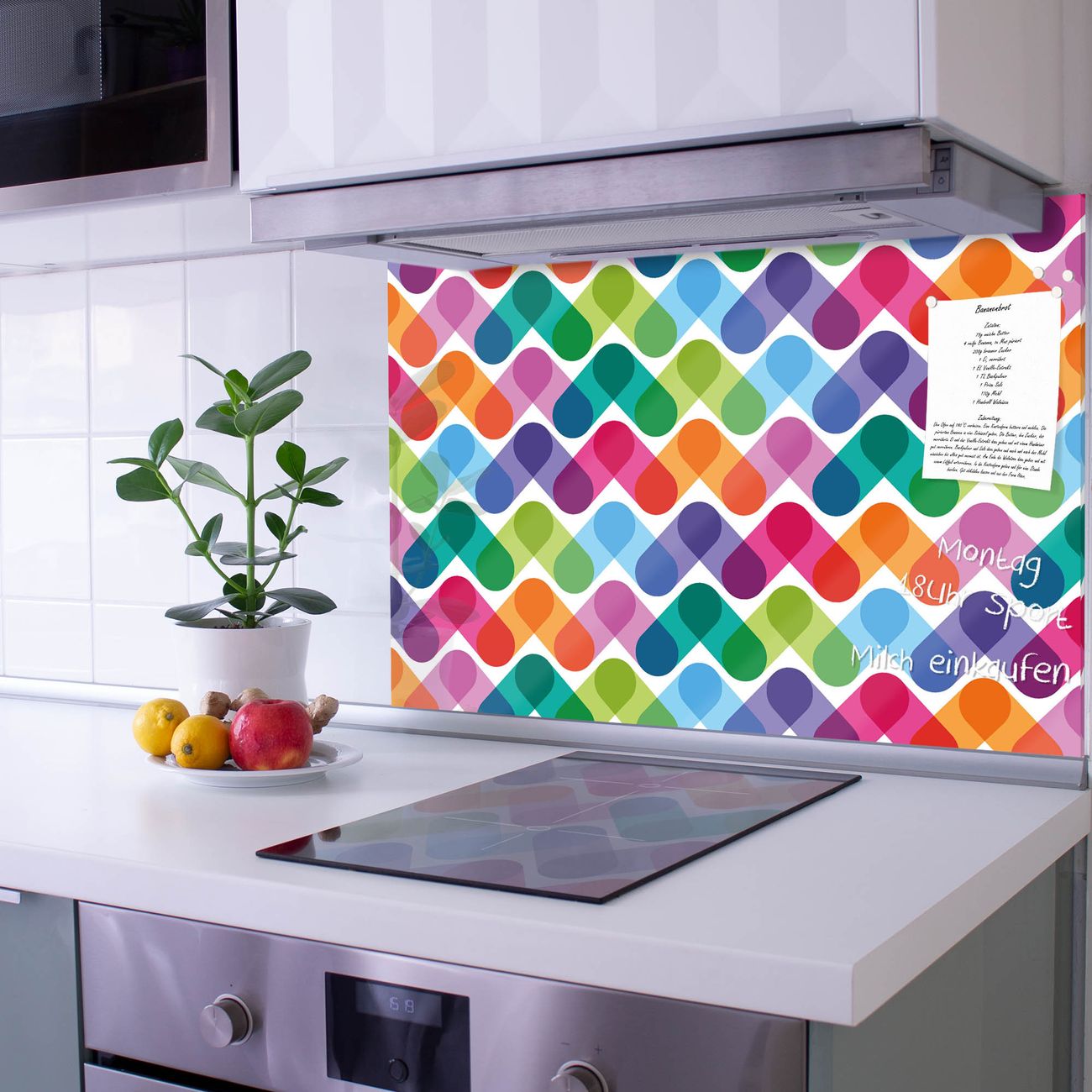Die banjado Glas Küchenrückwand in verschiedenen Größen mit Motiv Bunte Ketten schützt Ihre Küchenfliesen vor Fettspritzern oder Wasserflecken. Der Spritzschutz ist gleichzeitig magnetisch und hält Ihre Rezepte oder Einkaufslisten. 4 Neodym-Magnete und 1 Kreidestift liegen bereits bei. Leuchtende Motive und hochwertiges Material machen den Spritzschutz zum Designobjekt. Das dekorative Glasbild gibt Ihrer Küche ein individuelles Erscheinungsbild. Abgerundete Kanten und Sicherheitsglas sorgen für einen sicheren Einsatz.