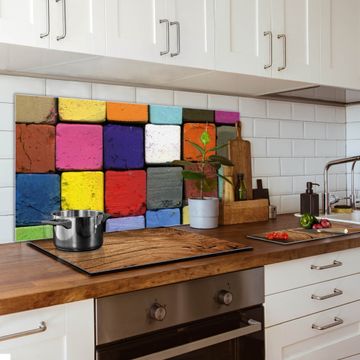 Die banjado Glas Küchenrückwand in verschiedenen Größen mit Motiv Bunte Kreide schützt Ihre Küchenfliesen vor Fettspritzern oder Wasserflecken. Der Spritzschutz ist gleichzeitig magnetisch und hält Ihre Rezepte oder Einkaufslisten. 4 Neodym-Magnete und 1 Kreidestift liegen bereits bei. Leuchtende Motive und hochwertiges Material machen den Spritzschutz zum Designobjekt. Das dekorative Glasbild gibt Ihrer Küche ein individuelles Erscheinungsbild. Abgerundete Kanten und Sicherheitsglas sorgen für einen sicheren Einsatz.