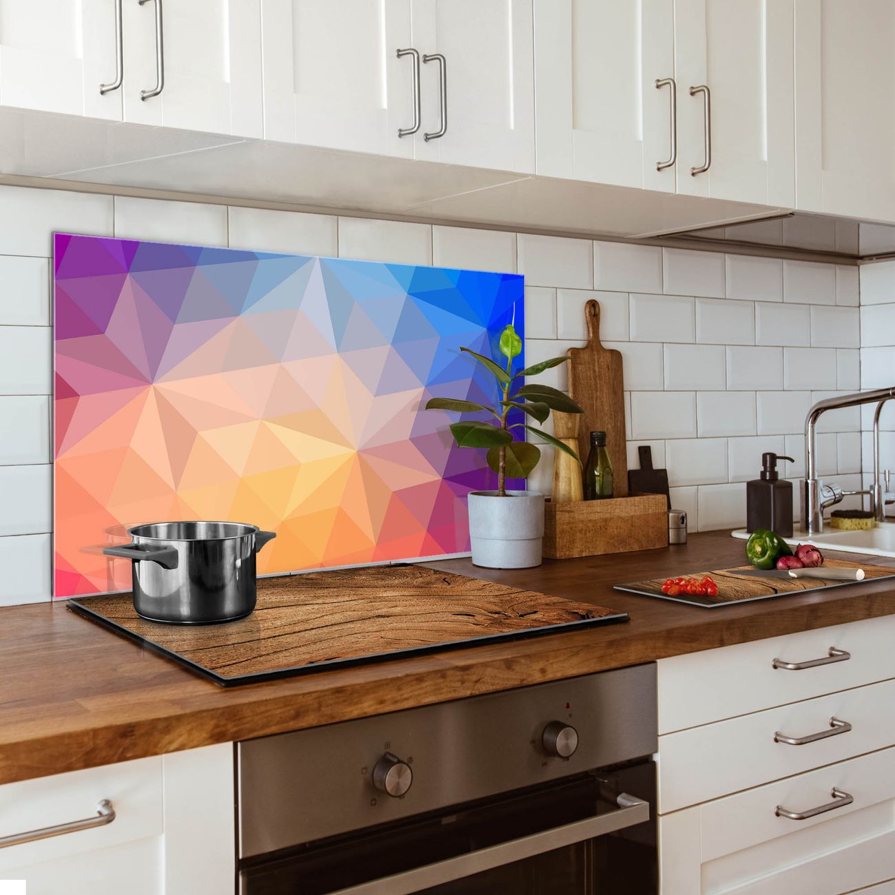 Die banjado Glas Küchenrückwand in verschiedenen Größen mit Motiv Bunte Kristalle schützt Ihre Küchenfliesen vor Fettspritzern oder Wasserflecken. Der Spritzschutz ist gleichzeitig magnetisch und hält Ihre Rezepte oder Einkaufslisten. 4 Neodym-Magnete und 1 Kreidestift liegen bereits bei. Leuchtende Motive und hochwertiges Material machen den Spritzschutz zum Designobjekt. Das dekorative Glasbild gibt Ihrer Küche ein individuelles Erscheinungsbild. Abgerundete Kanten und Sicherheitsglas sorgen für einen sicheren Einsatz.