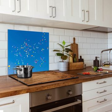 Die banjado Glas Küchenrückwand in verschiedenen Größen mit Motiv Bunte Luftballons schützt Ihre Küchenfliesen vor Fettspritzern oder Wasserflecken. Der Spritzschutz ist gleichzeitig magnetisch und hält Ihre Rezepte oder Einkaufslisten. 4 Neodym-Magnete und 1 Kreidestift liegen bereits bei. Leuchtende Motive und hochwertiges Material machen den Spritzschutz zum Designobjekt. Das dekorative Glasbild gibt Ihrer Küche ein individuelles Erscheinungsbild. Abgerundete Kanten und Sicherheitsglas sorgen für einen sicheren Einsatz.