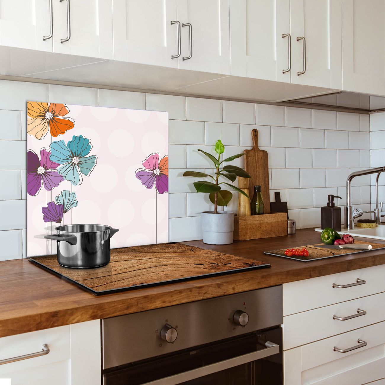 Die banjado Glas Küchenrückwand in verschiedenen Größen mit Motiv Bunter Mohn schützt Ihre Küchenfliesen vor Fettspritzern oder Wasserflecken. Der Spritzschutz ist gleichzeitig magnetisch und hält Ihre Rezepte oder Einkaufslisten. 4 Neodym-Magnete und 1 Kreidestift liegen bereits bei. Leuchtende Motive und hochwertiges Material machen den Spritzschutz zum Designobjekt. Das dekorative Glasbild gibt Ihrer Küche ein individuelles Erscheinungsbild. Abgerundete Kanten und Sicherheitsglas sorgen für einen sicheren Einsatz.
