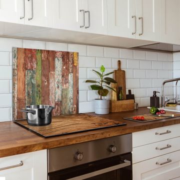 Die banjado Glas Küchenrückwand in verschiedenen Größen mit Motiv Buntes Holz schützt Ihre Küchenfliesen vor Fettspritzern oder Wasserflecken. Der Spritzschutz ist gleichzeitig magnetisch und hält Ihre Rezepte oder Einkaufslisten. 4 Neodym-Magnete und 1 Kreidestift liegen bereits bei. Leuchtende Motive und hochwertiges Material machen den Spritzschutz zum Designobjekt. Das dekorative Glasbild gibt Ihrer Küche ein individuelles Erscheinungsbild. Abgerundete Kanten und Sicherheitsglas sorgen für einen sicheren Einsatz.