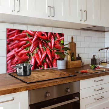 Die banjado Glas Küchenrückwand in verschiedenen Größen mit Motiv Chilli schützt Ihre Küchenfliesen vor Fettspritzern oder Wasserflecken. Der Spritzschutz ist gleichzeitig magnetisch und hält Ihre Rezepte oder Einkaufslisten. 4 Neodym-Magnete und 1 Kreidestift liegen bereits bei. Leuchtende Motive und hochwertiges Material machen den Spritzschutz zum Designobjekt. Das dekorative Glasbild gibt Ihrer Küche ein individuelles Erscheinungsbild. Abgerundete Kanten und Sicherheitsglas sorgen für einen sicheren Einsatz.