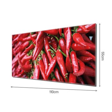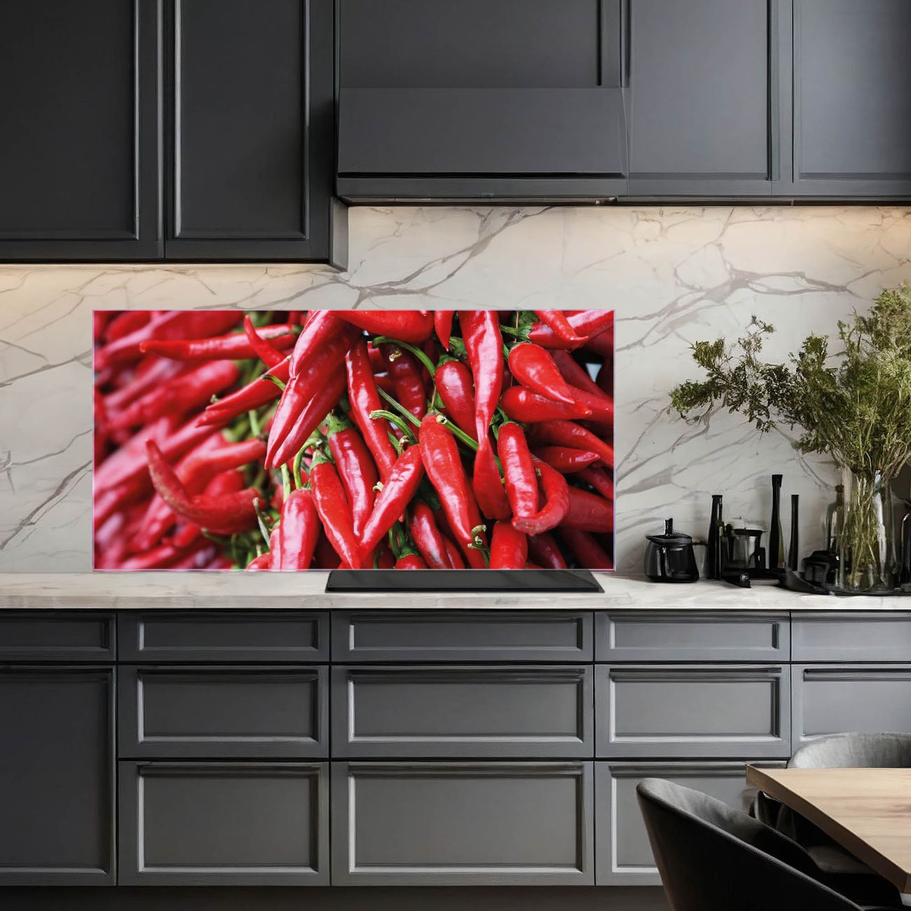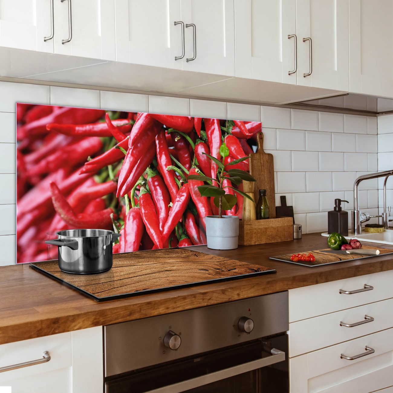Die banjado Glas Küchenrückwand in verschiedenen Größen mit Motiv Chilli schützt Ihre Küchenfliesen vor Fettspritzern oder Wasserflecken. Der Spritzschutz ist gleichzeitig magnetisch und hält Ihre Rezepte oder Einkaufslisten. 4 Neodym-Magnete und 1 Kreidestift liegen bereits bei. Leuchtende Motive und hochwertiges Material machen den Spritzschutz zum Designobjekt. Das dekorative Glasbild gibt Ihrer Küche ein individuelles Erscheinungsbild. Abgerundete Kanten und Sicherheitsglas sorgen für einen sicheren Einsatz.
