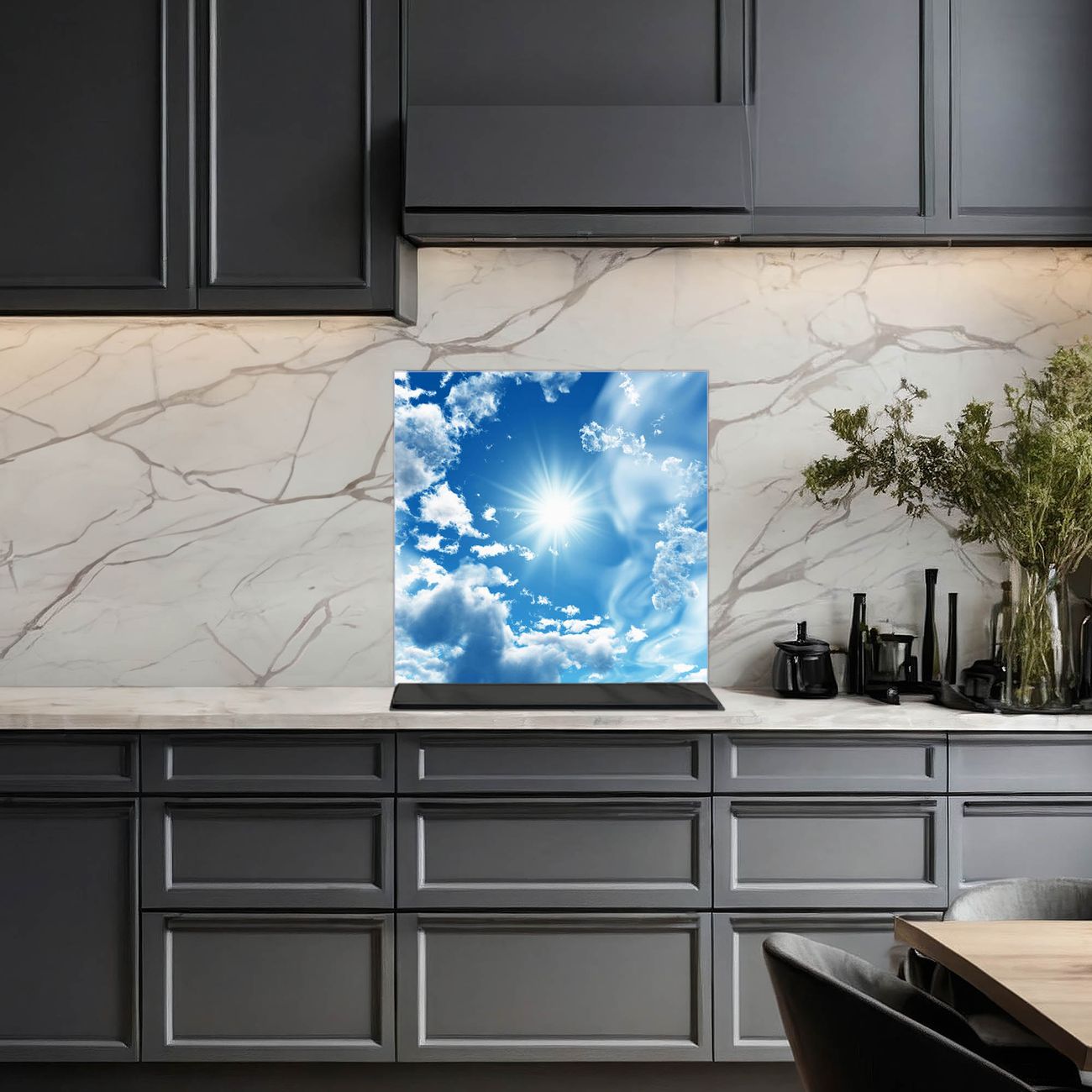 Die banjado Glas Küchenrückwand in verschiedenen Größen mit Motiv Clouds schützt Ihre Küchenfliesen vor Fettspritzern oder Wasserflecken. Der Spritzschutz ist gleichzeitig magnetisch und hält Ihre Rezepte oder Einkaufslisten. 4 Neodym-Magnete und 1 Kreidestift liegen bereits bei. Leuchtende Motive und hochwertiges Material machen den Spritzschutz zum Designobjekt. Das dekorative Glasbild gibt Ihrer Küche ein individuelles Erscheinungsbild. Abgerundete Kanten und Sicherheitsglas sorgen für einen sicheren Einsatz.