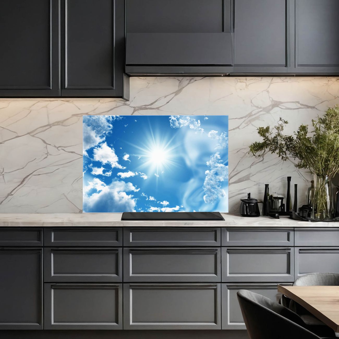 Die banjado Glas Küchenrückwand in verschiedenen Größen mit Motiv Clouds schützt Ihre Küchenfliesen vor Fettspritzern oder Wasserflecken. Der Spritzschutz ist gleichzeitig magnetisch und hält Ihre Rezepte oder Einkaufslisten. 4 Neodym-Magnete und 1 Kreidestift liegen bereits bei. Leuchtende Motive und hochwertiges Material machen den Spritzschutz zum Designobjekt. Das dekorative Glasbild gibt Ihrer Küche ein individuelles Erscheinungsbild. Abgerundete Kanten und Sicherheitsglas sorgen für einen sicheren Einsatz.