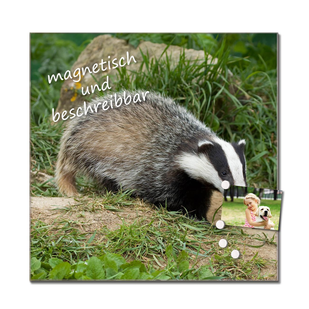 Die banjado Glas Küchenrückwand in verschiedenen Größen mit Motiv Dachs schützt Ihre Küchenfliesen vor Fettspritzern oder Wasserflecken. Der Spritzschutz ist gleichzeitig magnetisch und hält Ihre Rezepte oder Einkaufslisten. 4 Neodym-Magnete und 1 Kreidestift liegen bereits bei. Leuchtende Motive und hochwertiges Material machen den Spritzschutz zum Designobjekt. Das dekorative Glasbild gibt Ihrer Küche ein individuelles Erscheinungsbild. Abgerundete Kanten und Sicherheitsglas sorgen für einen sicheren Einsatz.