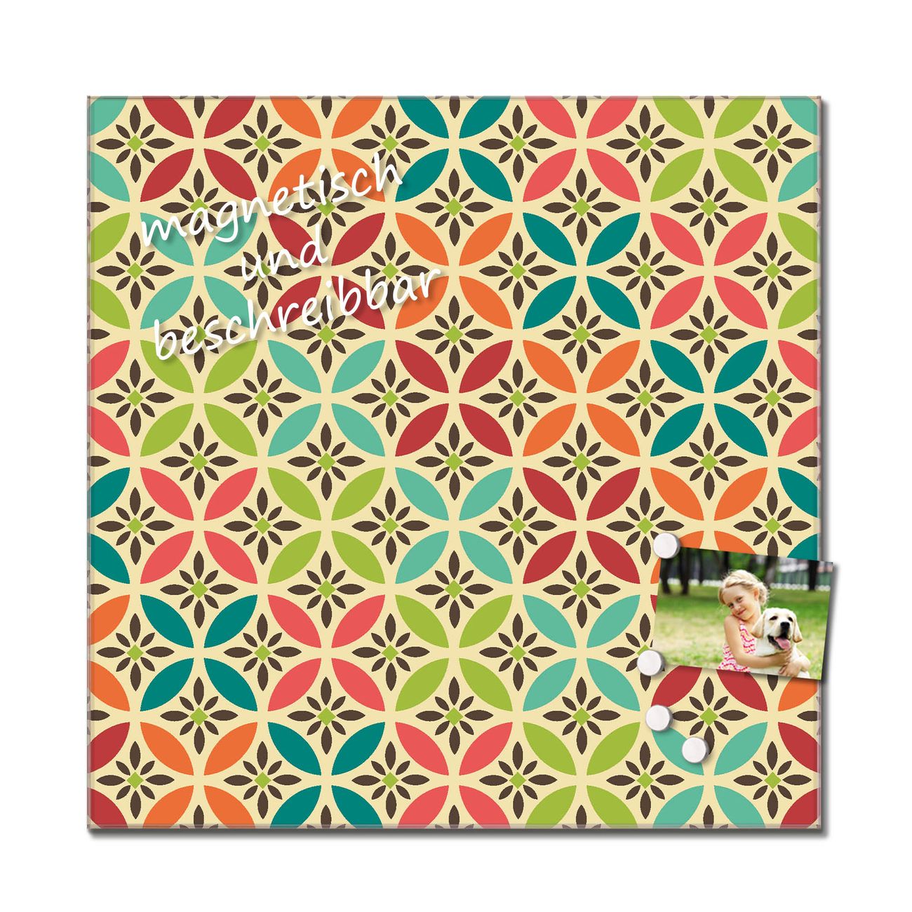 Bitte beachten Sie, dass ausschließlich spezielle Magnete an der Glastafel haften! Wir empfehlen banjado Neodym Magnete, diese sind durch uns auf Wirksamkeit geprüft.