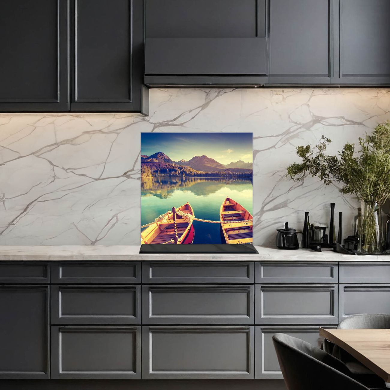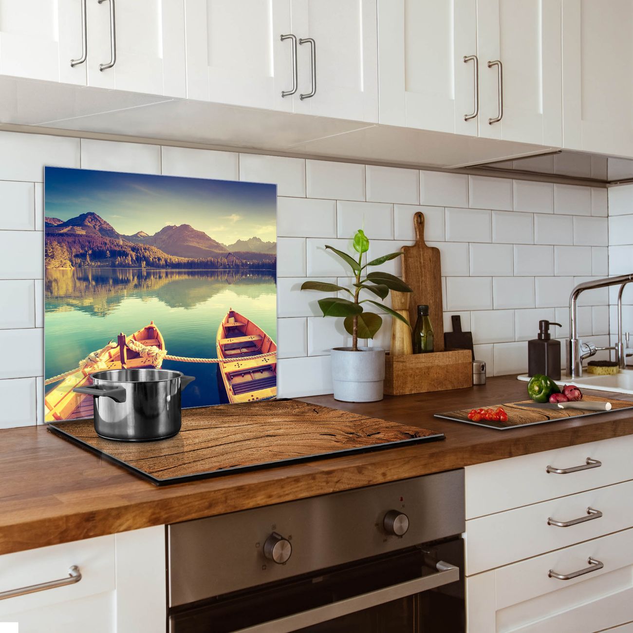 Küchenrückwand Glas Motiv Drei Boote Am Steg