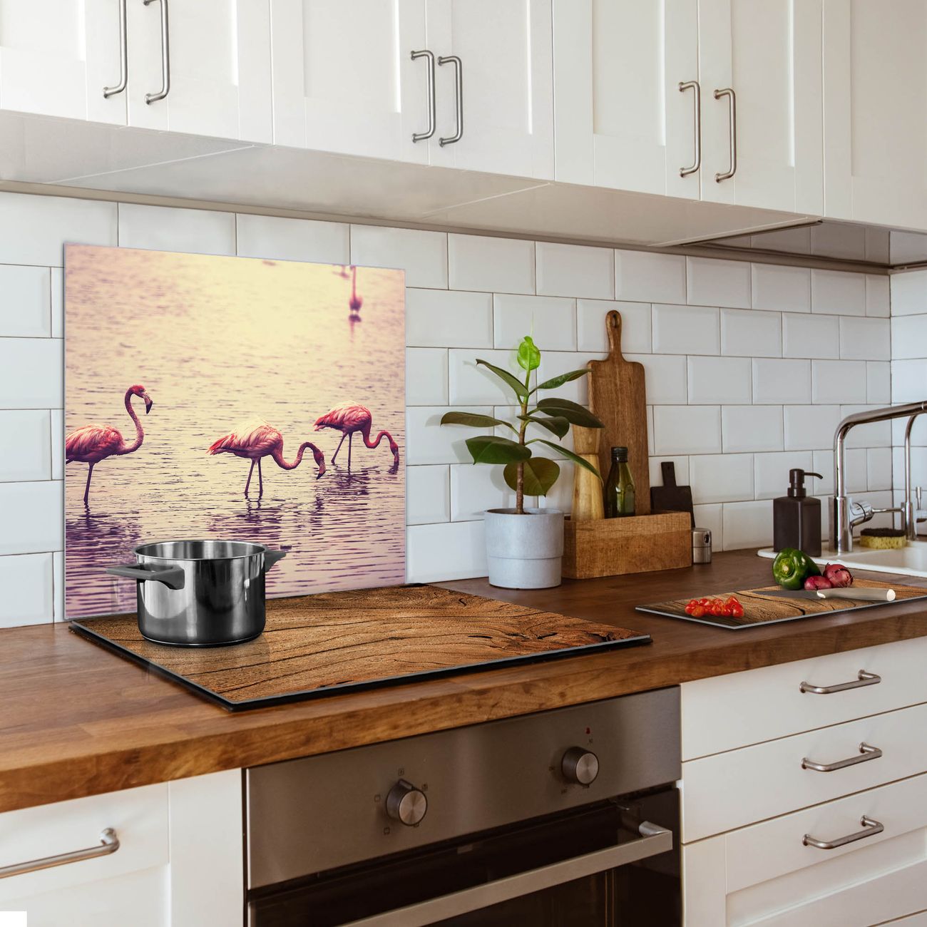 Küchenrückwand Glas Motiv Drei Flamnigos