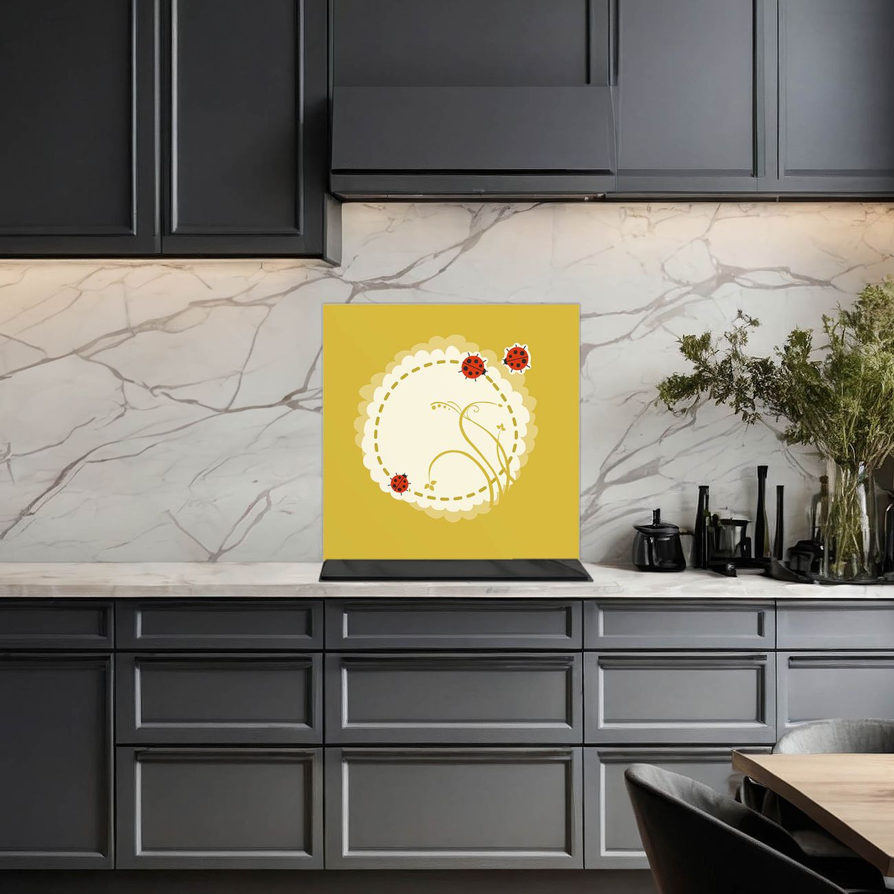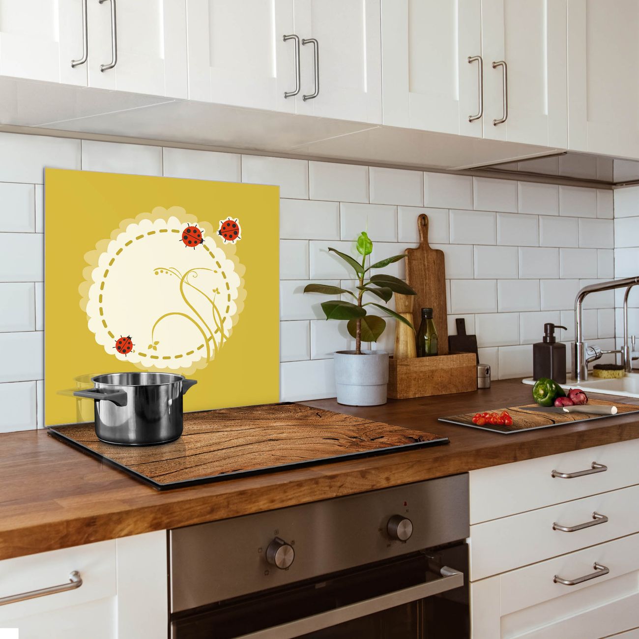 Die banjado Glas Küchenrückwand in verschiedenen Größen mit Motiv Drei Marienkäfer schützt Ihre Küchenfliesen vor Fettspritzern oder Wasserflecken. Der Spritzschutz ist gleichzeitig magnetisch und hält Ihre Rezepte oder Einkaufslisten. 4 Neodym-Magnete und 1 Kreidestift liegen bereits bei. Leuchtende Motive und hochwertiges Material machen den Spritzschutz zum Designobjekt. Das dekorative Glasbild gibt Ihrer Küche ein individuelles Erscheinungsbild. Abgerundete Kanten und Sicherheitsglas sorgen für einen sicheren Einsatz.