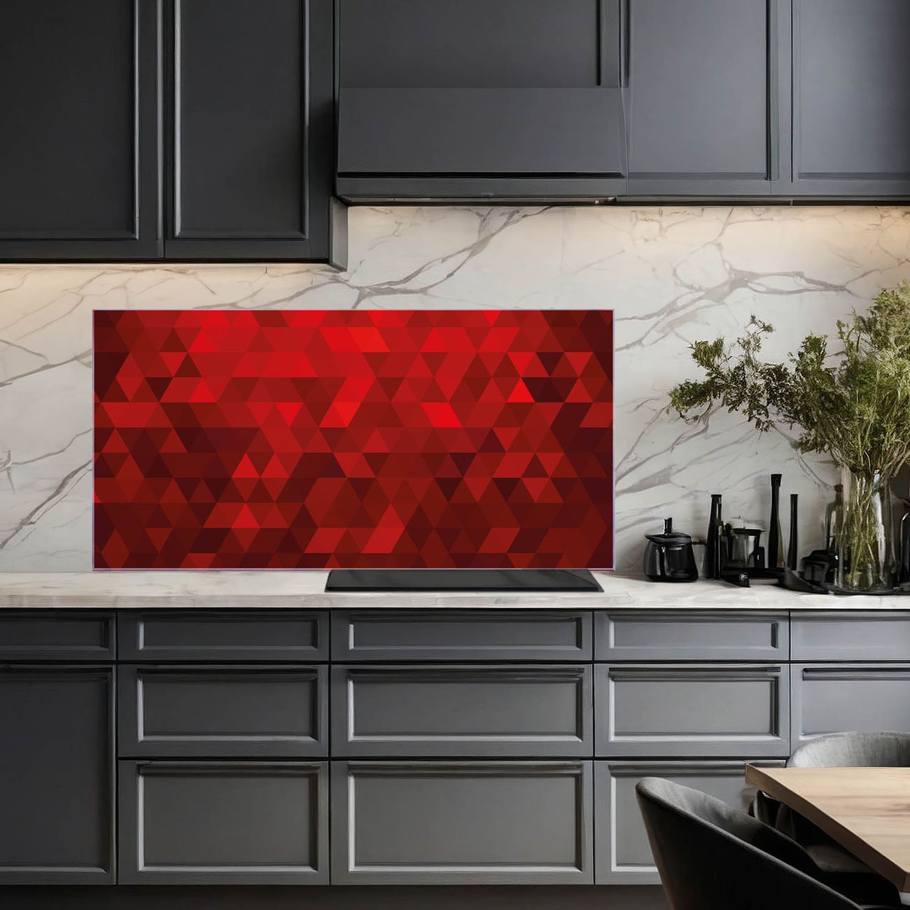 Küchenrückwand Glas Motiv Dreiecke Rot