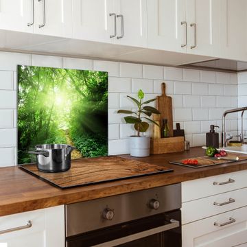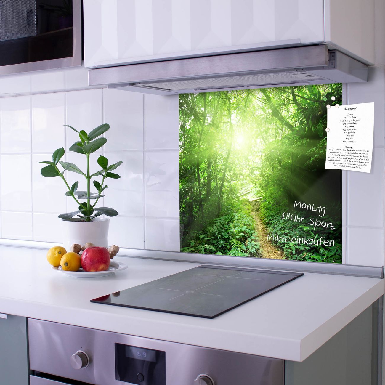 Die banjado Glas Küchenrückwand in verschiedenen Größen mit Motiv Dschungel Malaysia schützt Ihre Küchenfliesen vor Fettspritzern oder Wasserflecken. Der Spritzschutz ist gleichzeitig magnetisch und hält Ihre Rezepte oder Einkaufslisten. 4 Neodym-Magnete und 1 Kreidestift liegen bereits bei. Leuchtende Motive und hochwertiges Material machen den Spritzschutz zum Designobjekt. Das dekorative Glasbild gibt Ihrer Küche ein individuelles Erscheinungsbild. Abgerundete Kanten und Sicherheitsglas sorgen für einen sicheren Einsatz.