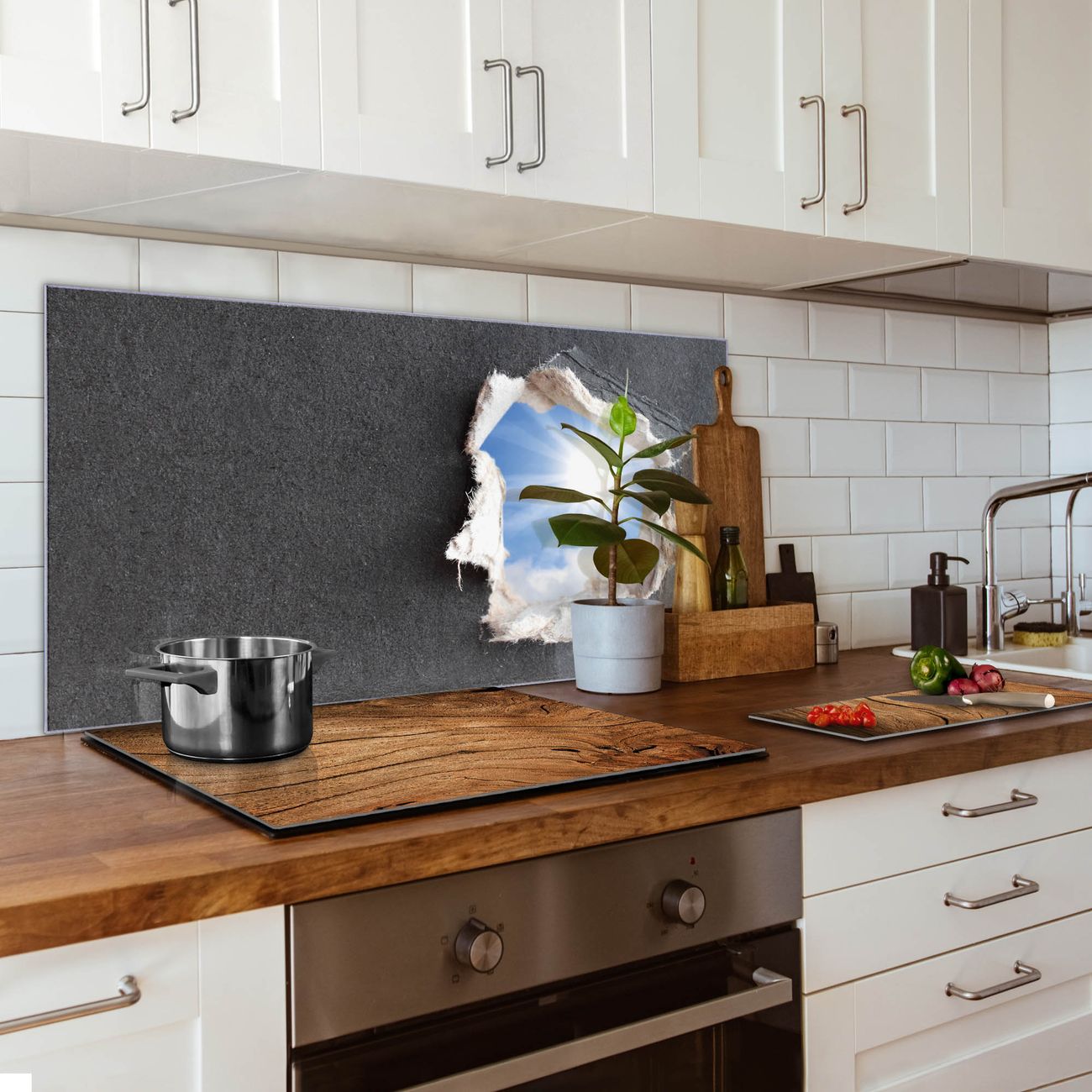 Die banjado Glas Küchenrückwand in verschiedenen Größen mit Motiv Durchblick schützt Ihre Küchenfliesen vor Fettspritzern oder Wasserflecken. Der Spritzschutz ist gleichzeitig magnetisch und hält Ihre Rezepte oder Einkaufslisten. 4 Neodym-Magnete und 1 Kreidestift liegen bereits bei. Leuchtende Motive und hochwertiges Material machen den Spritzschutz zum Designobjekt. Das dekorative Glasbild gibt Ihrer Küche ein individuelles Erscheinungsbild. Abgerundete Kanten und Sicherheitsglas sorgen für einen sicheren Einsatz.