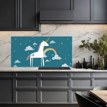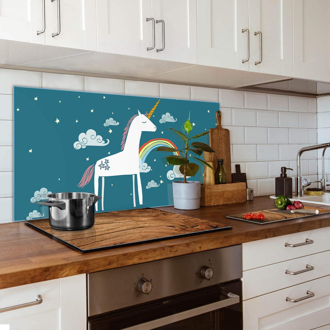 Die banjado Glas Küchenrückwand in verschiedenen Größen mit Motiv Einhorn schützt Ihre Küchenfliesen vor Fettspritzern oder Wasserflecken. Der Spritzschutz ist gleichzeitig magnetisch und hält Ihre Rezepte oder Einkaufslisten. 4 Neodym-Magnete und 1 Kreidestift liegen bereits bei. Leuchtende Motive und hochwertiges Material machen den Spritzschutz zum Designobjekt. Das dekorative Glasbild gibt Ihrer Küche ein individuelles Erscheinungsbild. Abgerundete Kanten und Sicherheitsglas sorgen für einen sicheren Einsatz.