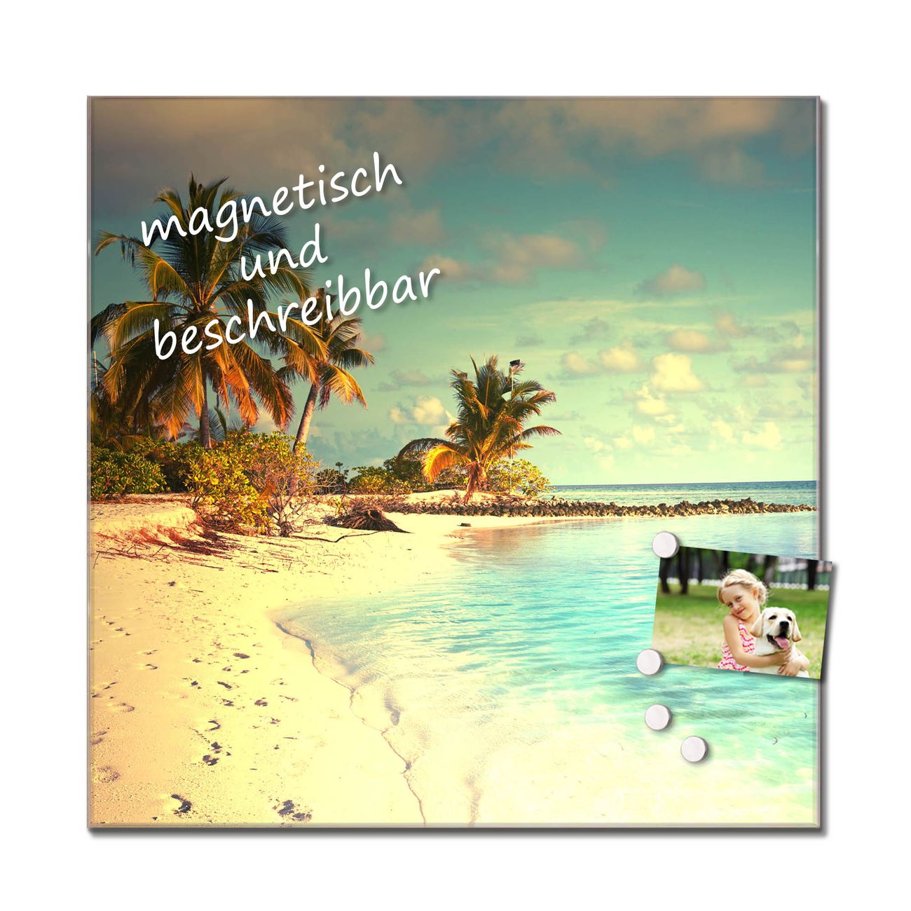 Bitte beachten Sie, dass ausschließlich spezielle Magnete an der Glastafel haften! Wir empfehlen banjado Neodym Magnete, diese sind durch uns auf Wirksamkeit geprüft.