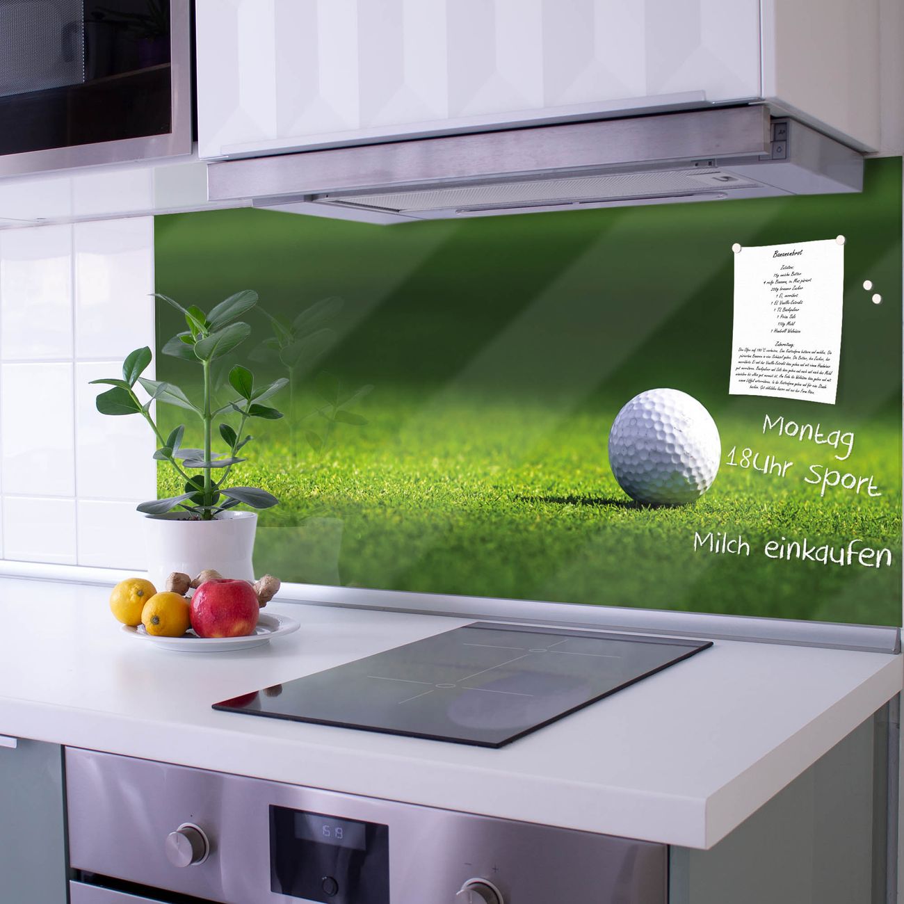 Die banjado Glas Küchenrückwand in verschiedenen Größen mit Motiv Einsamer Golfball schützt Ihre Küchenfliesen vor Fettspritzern oder Wasserflecken. Der Spritzschutz ist gleichzeitig magnetisch und hält Ihre Rezepte oder Einkaufslisten. 4 Neodym-Magnete und 1 Kreidestift liegen bereits bei. Leuchtende Motive und hochwertiges Material machen den Spritzschutz zum Designobjekt. Das dekorative Glasbild gibt Ihrer Küche ein individuelles Erscheinungsbild. Abgerundete Kanten und Sicherheitsglas sorgen für einen sicheren Einsatz.