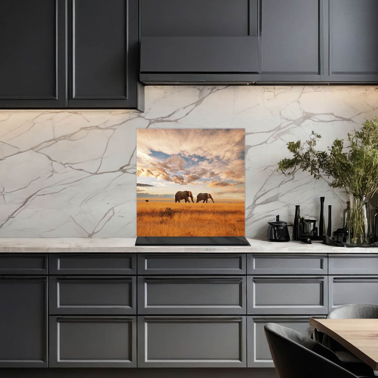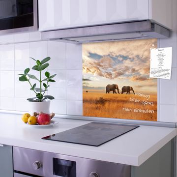 Die banjado Glas Küchenrückwand in verschiedenen Größen mit Motiv Elefanten schützt Ihre Küchenfliesen vor Fettspritzern oder Wasserflecken. Der Spritzschutz ist gleichzeitig magnetisch und hält Ihre Rezepte oder Einkaufslisten. 4 Neodym-Magnete und 1 Kreidestift liegen bereits bei. Leuchtende Motive und hochwertiges Material machen den Spritzschutz zum Designobjekt. Das dekorative Glasbild gibt Ihrer Küche ein individuelles Erscheinungsbild. Abgerundete Kanten und Sicherheitsglas sorgen für einen sicheren Einsatz.