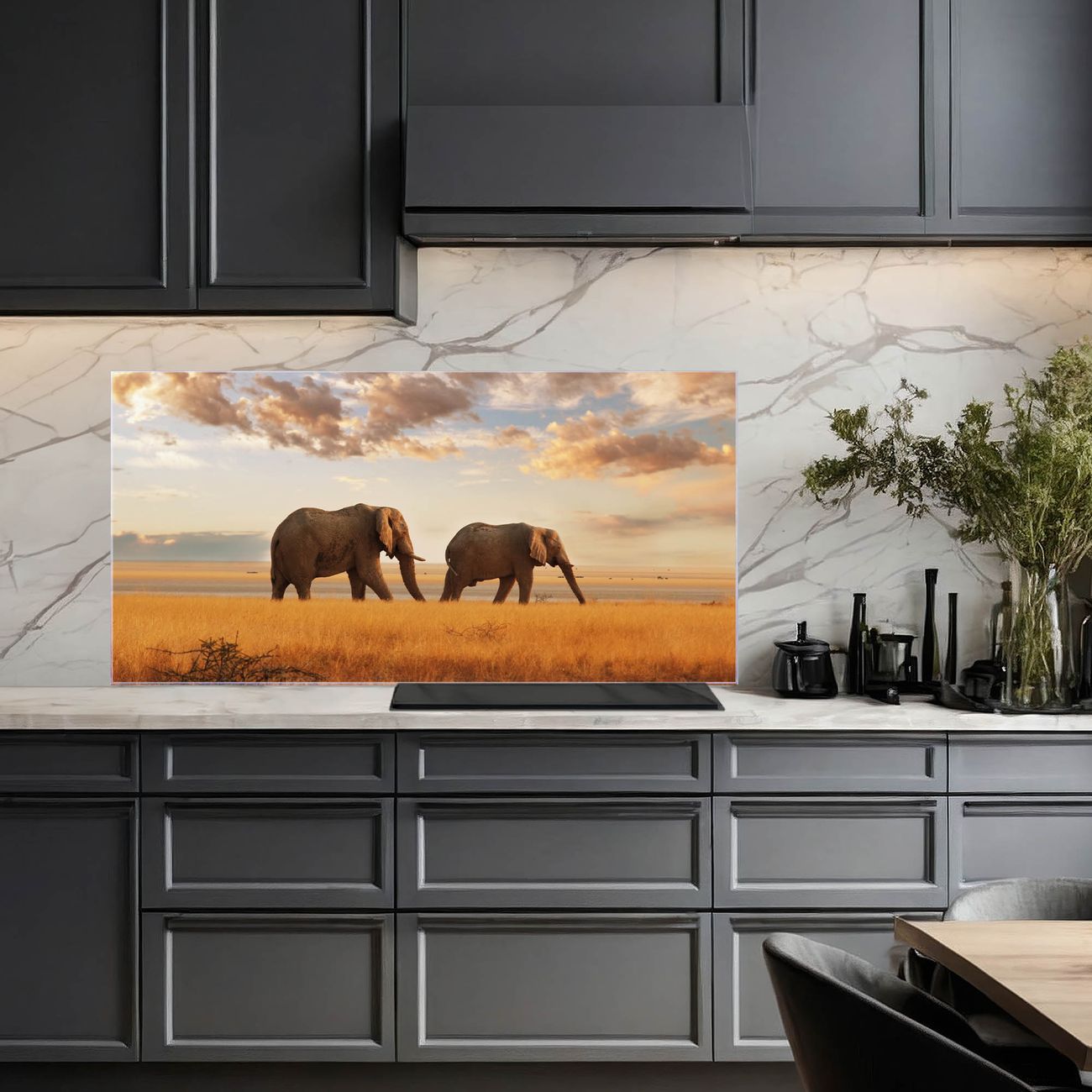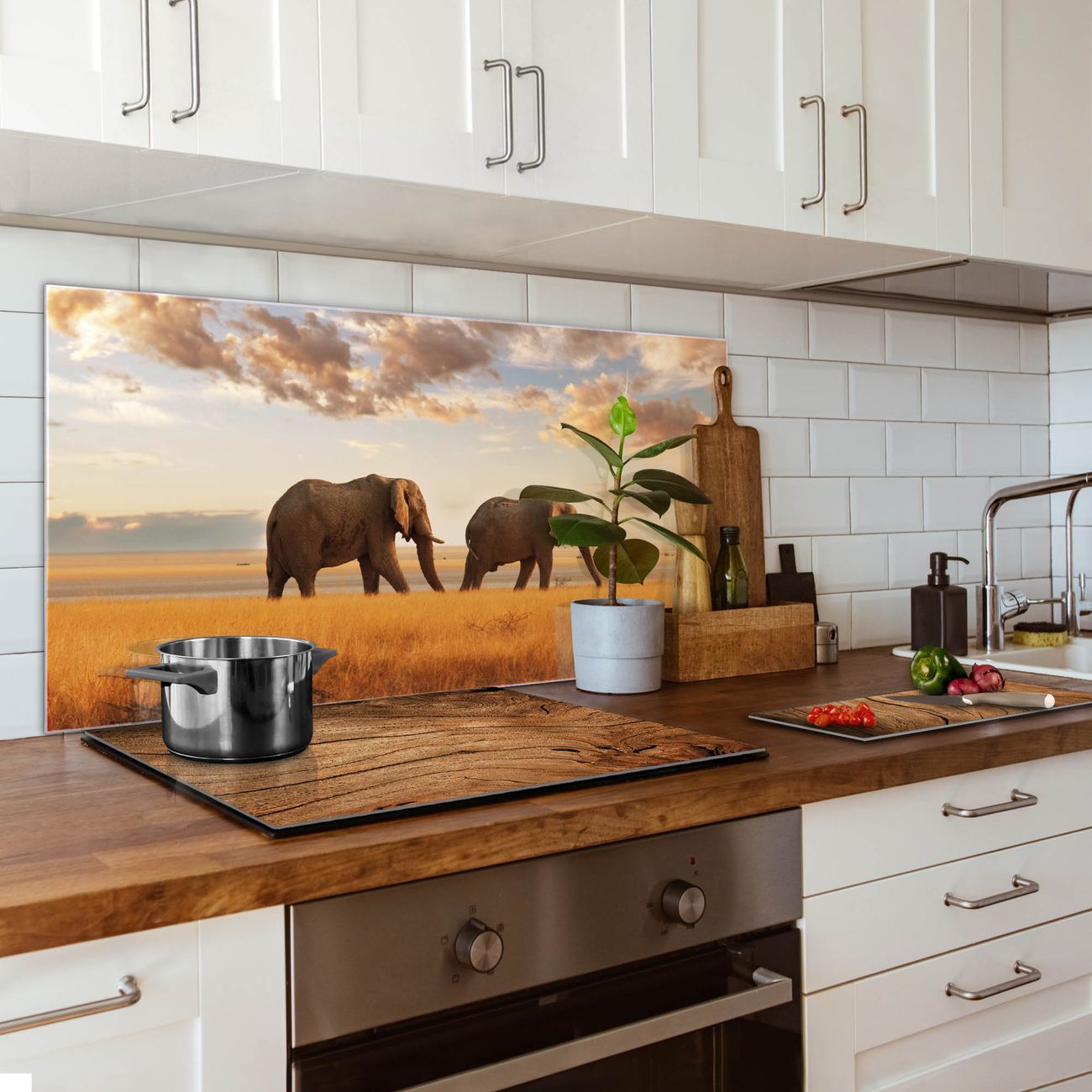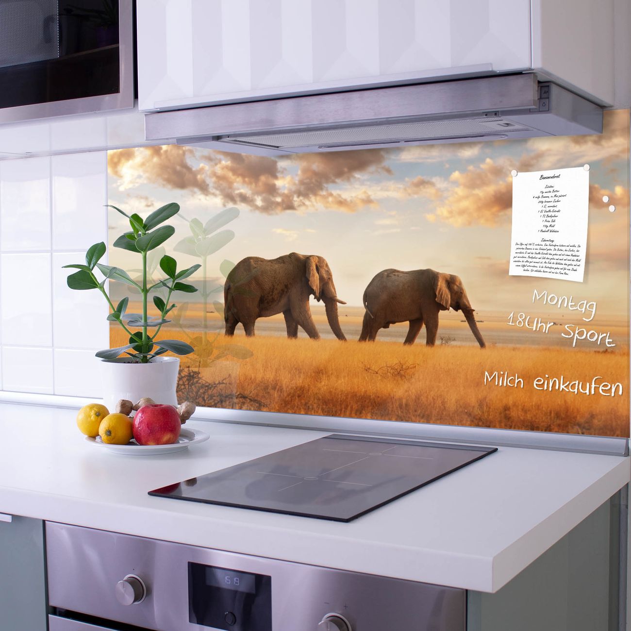 Die banjado Glas Küchenrückwand in verschiedenen Größen mit Motiv Elefanten schützt Ihre Küchenfliesen vor Fettspritzern oder Wasserflecken. Der Spritzschutz ist gleichzeitig magnetisch und hält Ihre Rezepte oder Einkaufslisten. 4 Neodym-Magnete und 1 Kreidestift liegen bereits bei. Leuchtende Motive und hochwertiges Material machen den Spritzschutz zum Designobjekt. Das dekorative Glasbild gibt Ihrer Küche ein individuelles Erscheinungsbild. Abgerundete Kanten und Sicherheitsglas sorgen für einen sicheren Einsatz.
