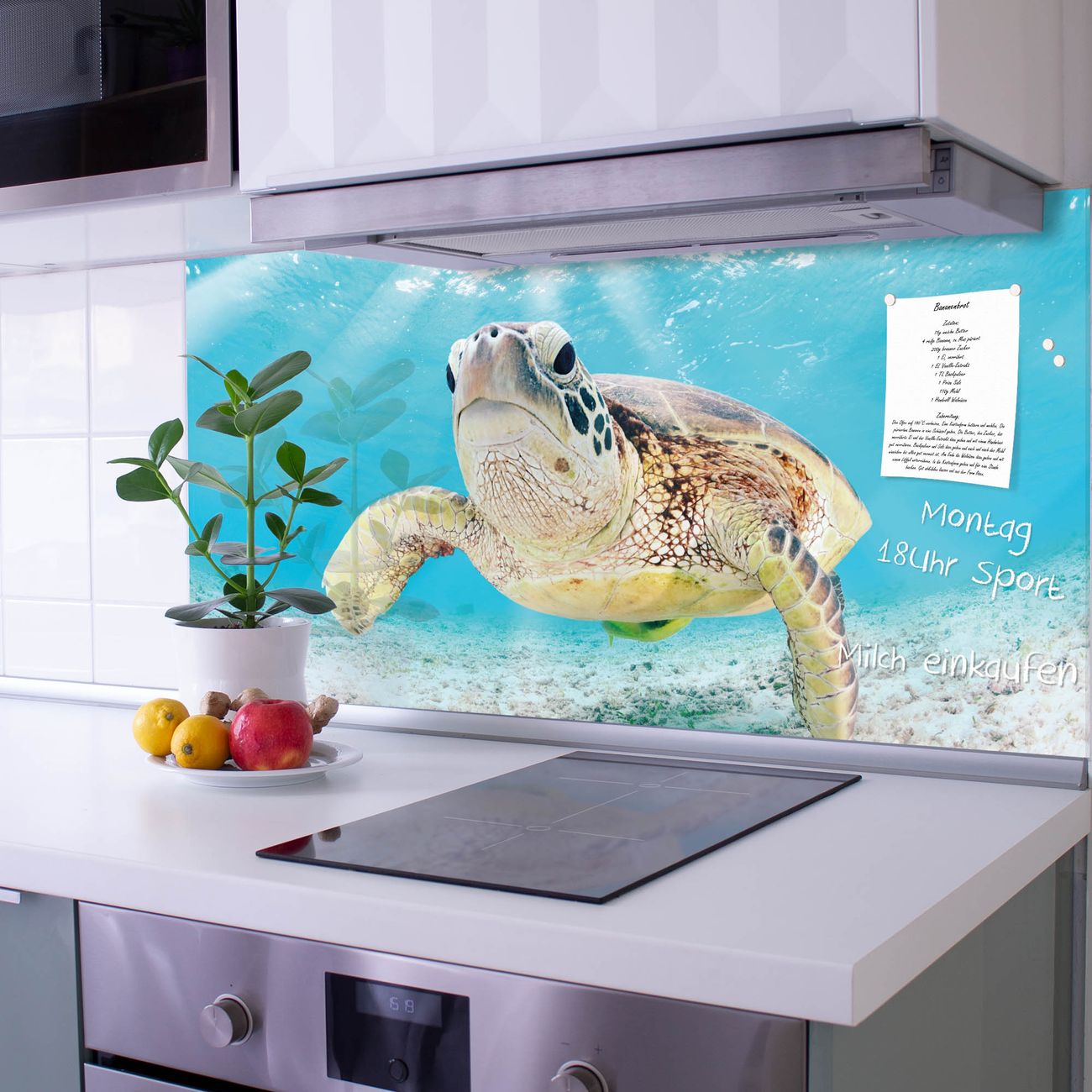 Die Küchenrückwand ist eine elegante Mehrzwecktafel: als Spritzschutz hinter Herd oder Waschbecken, hält Notizen wie ein Memoboard, ist beschreibbar mit Kreidestiften oder Whiteboard-Markern, sieht umwerfend als Glasbild aus. Sie besteht aus gehärtetem Glas, die Rückwand aus einem magnetischen Stahlblech. Durch die superflache Bauweise haben Sie die Wahl aus einer Vielzahl von Befestigungsmöglichkeiten. Sie können die Küchenrückwand mit einem Montagekleber superflach an die Wand kleben oder Sie wählen eines unserer passenden Befestigungssets, welches eine optimale Montage garantiert. Die Küchenrückwand besteht aus zertifiziertem Sicherheitsglas. Durch die mitgelieferten 4 Neodym-Magnete ist Ihre Glas Magnettafel sofort einsatzbereit.