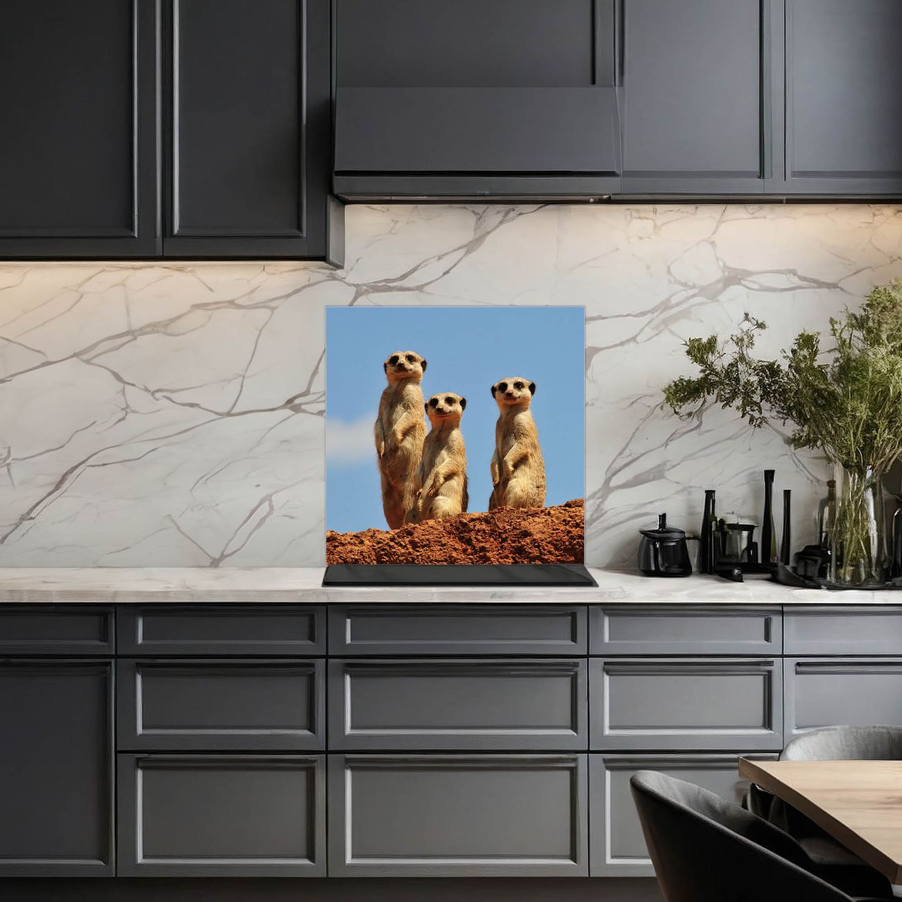 Küchenrückwand Glas Motiv Erdmännchenfamilie