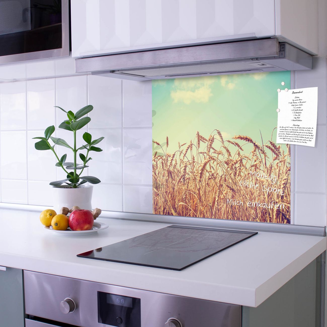Die banjado Glas Küchenrückwand in verschiedenen Größen mit Motiv Erntezeit schützt Ihre Küchenfliesen vor Fettspritzern oder Wasserflecken. Der Spritzschutz ist gleichzeitig magnetisch und hält Ihre Rezepte oder Einkaufslisten. 4 Neodym-Magnete und 1 Kreidestift liegen bereits bei. Leuchtende Motive und hochwertiges Material machen den Spritzschutz zum Designobjekt. Das dekorative Glasbild gibt Ihrer Küche ein individuelles Erscheinungsbild. Abgerundete Kanten und Sicherheitsglas sorgen für einen sicheren Einsatz.