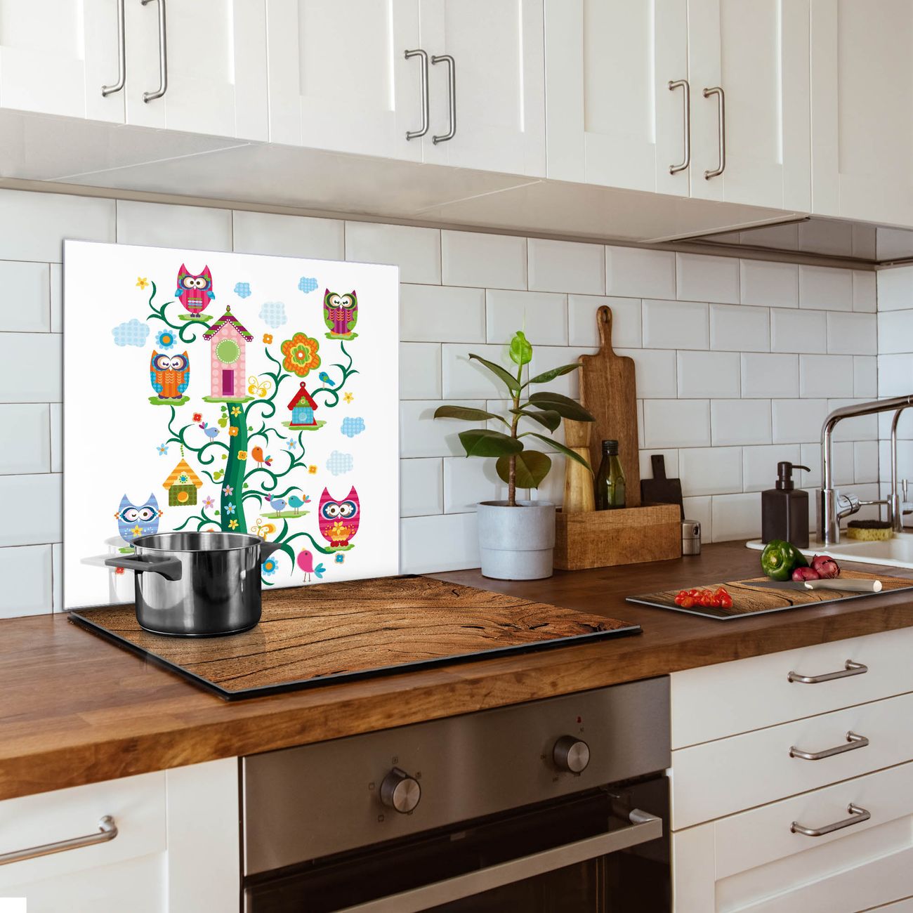Küchenrückwand Glas Motiv Eulenfamilie