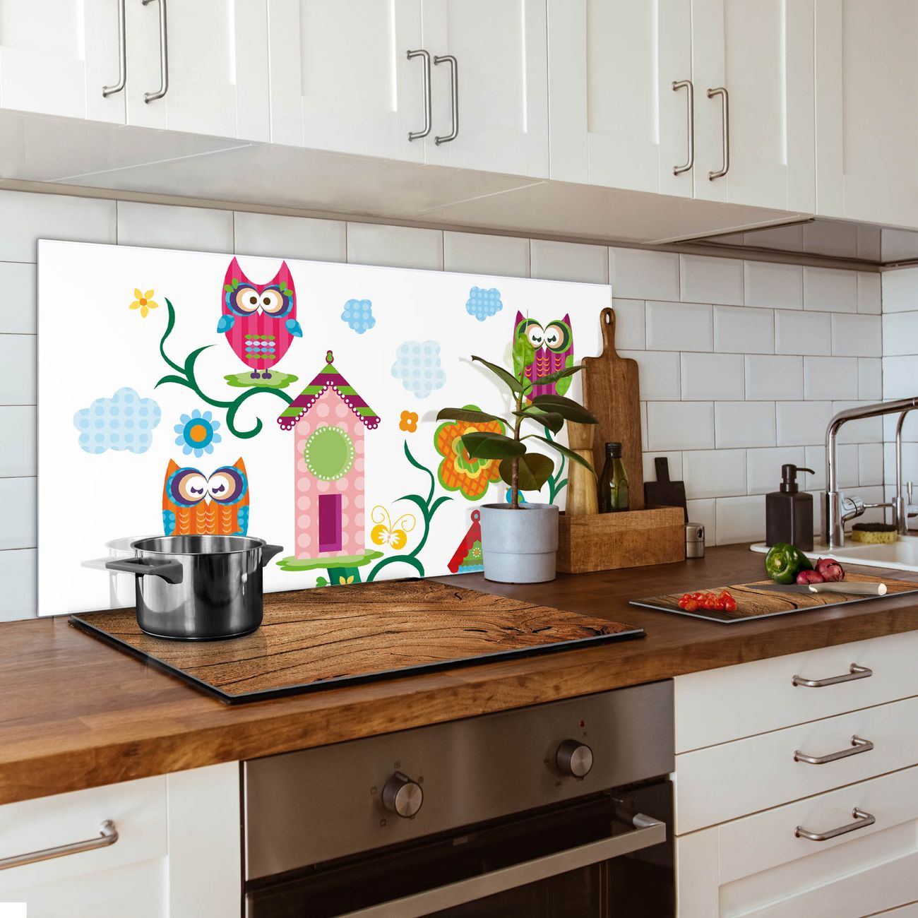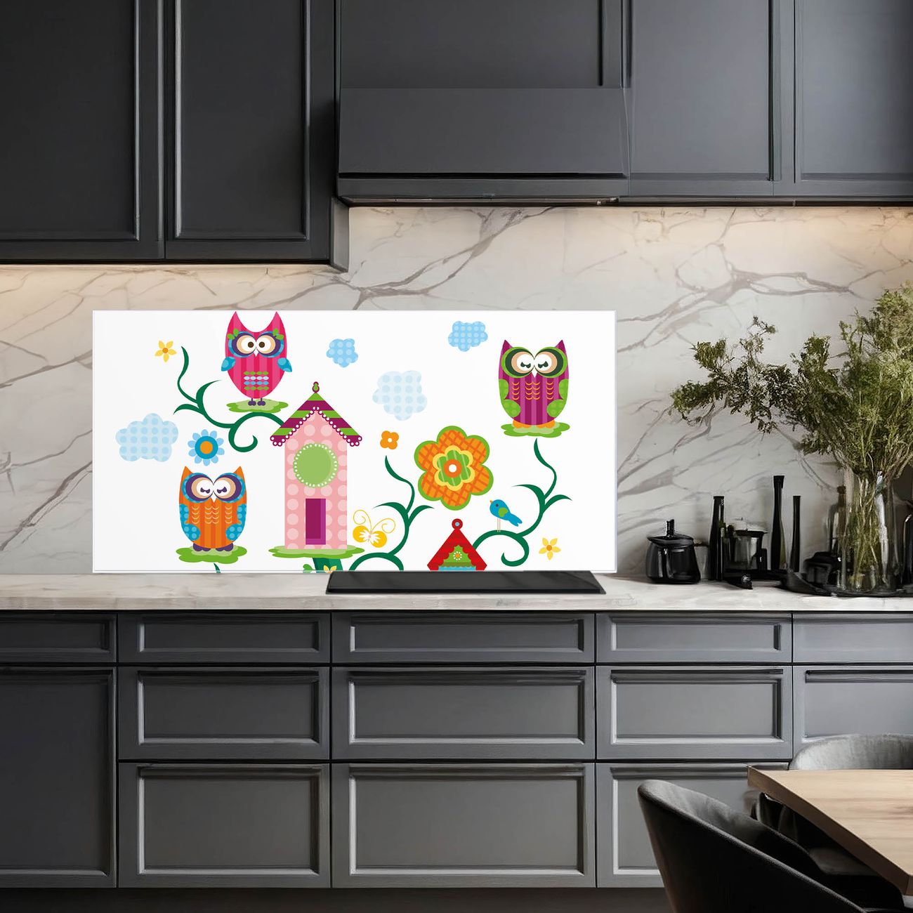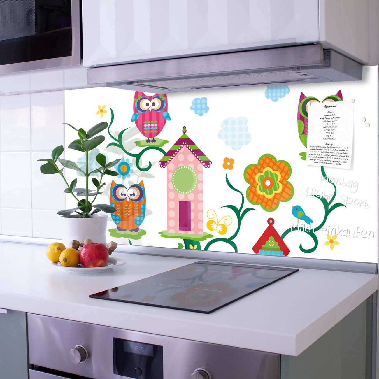 Die banjado Glas Küchenrückwand in verschiedenen Größen mit Motiv Eulenfamilie schützt Ihre Küchenfliesen vor Fettspritzern oder Wasserflecken. Der Spritzschutz ist gleichzeitig magnetisch und hält Ihre Rezepte oder Einkaufslisten. 4 Neodym-Magnete und 1 Kreidestift liegen bereits bei. Leuchtende Motive und hochwertiges Material machen den Spritzschutz zum Designobjekt. Das dekorative Glasbild gibt Ihrer Küche ein individuelles Erscheinungsbild. Abgerundete Kanten und Sicherheitsglas sorgen für einen sicheren Einsatz.