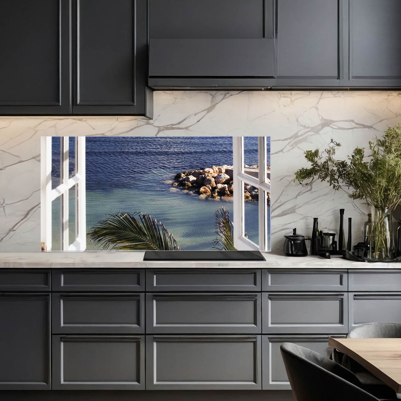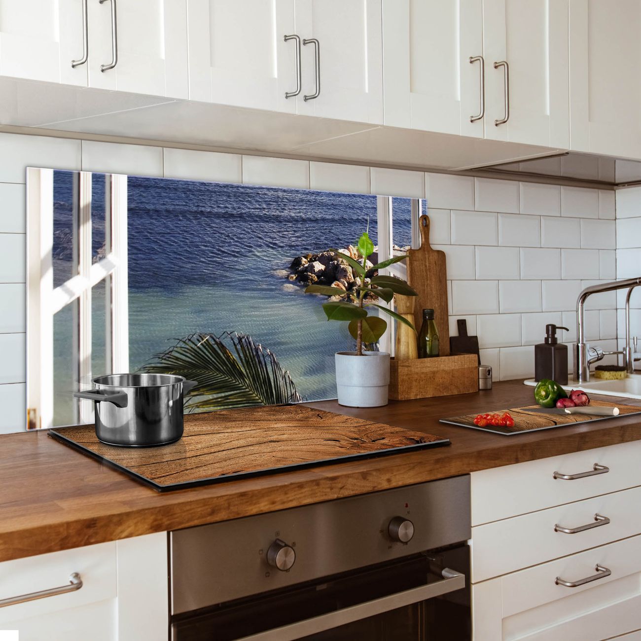 Die banjado Glas Küchenrückwand in verschiedenen Größen mit Motiv Fensterpanorama schützt Ihre Küchenfliesen vor Fettspritzern oder Wasserflecken. Der Spritzschutz ist gleichzeitig magnetisch und hält Ihre Rezepte oder Einkaufslisten. 4 Neodym-Magnete und 1 Kreidestift liegen bereits bei. Leuchtende Motive und hochwertiges Material machen den Spritzschutz zum Designobjekt. Das dekorative Glasbild gibt Ihrer Küche ein individuelles Erscheinungsbild. Abgerundete Kanten und Sicherheitsglas sorgen für einen sicheren Einsatz.