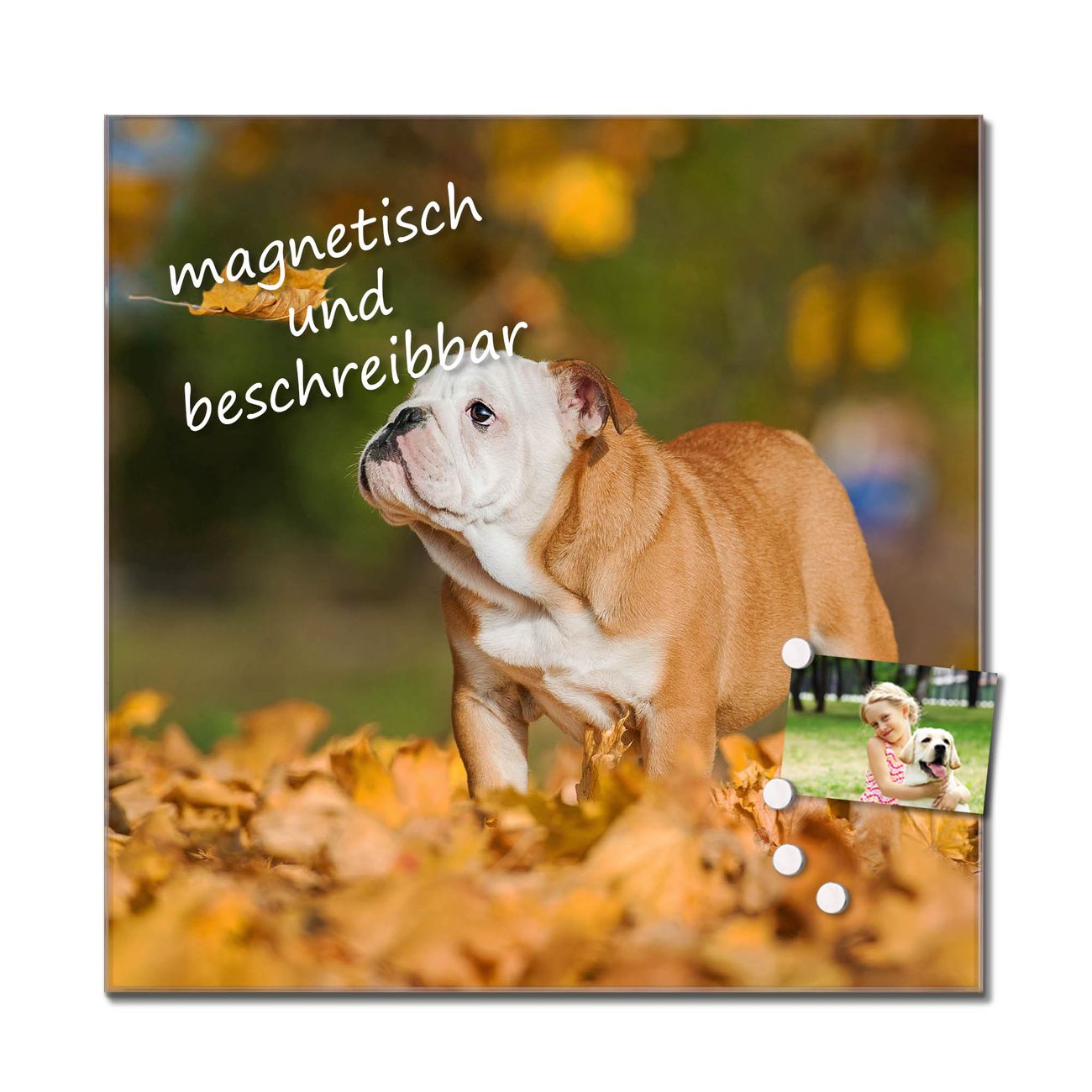 Bitte beachten Sie, dass ausschließlich spezielle Magnete an der Glastafel haften! Wir empfehlen banjado Neodym Magnete, diese sind durch uns auf Wirksamkeit geprüft.