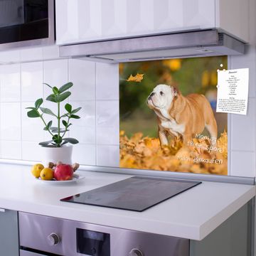 Die Küchenrückwand ist eine elegante Mehrzwecktafel: als Spritzschutz hinter Herd oder Waschbecken, hält Notizen wie ein Memoboard, ist beschreibbar mit Kreidestiften oder Whiteboard-Markern, sieht umwerfend als Glasbild aus. Sie besteht aus gehärtetem Glas, die Rückwand aus einem magnetischen Stahlblech. Durch die superflache Bauweise haben Sie die Wahl aus einer Vielzahl von Befestigungsmöglichkeiten. Sie können die Küchenrückwand mit einem Montagekleber superflach an die Wand kleben oder Sie wählen eines unserer passenden Befestigungssets, welches eine optimale Montage garantiert. Die Küchenrückwand besteht aus zertifiziertem Sicherheitsglas. Durch die mitgelieferten 4 Neodym-Magnete ist Ihre Glas Magnettafel sofort einsatzbereit.