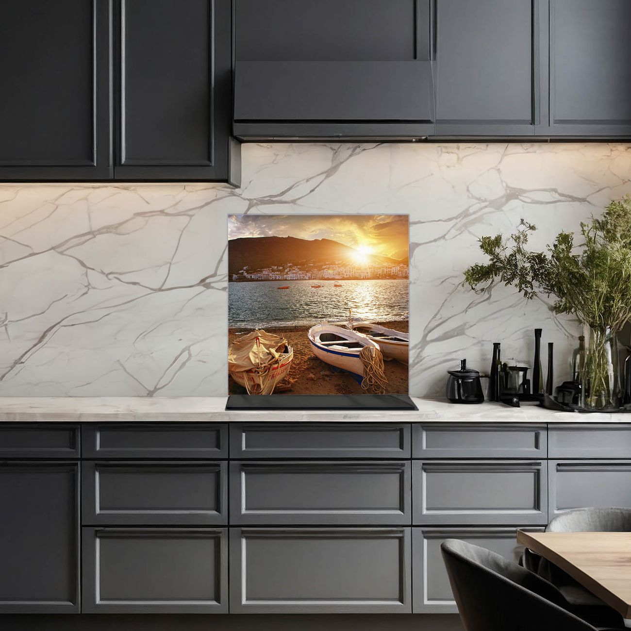 Die banjado Glas Küchenrückwand in verschiedenen Größen mit Motiv Fischerboote schützt Ihre Küchenfliesen vor Fettspritzern oder Wasserflecken. Der Spritzschutz ist gleichzeitig magnetisch und hält Ihre Rezepte oder Einkaufslisten. 4 Neodym-Magnete und 1 Kreidestift liegen bereits bei. Leuchtende Motive und hochwertiges Material machen den Spritzschutz zum Designobjekt. Das dekorative Glasbild gibt Ihrer Küche ein individuelles Erscheinungsbild. Abgerundete Kanten und Sicherheitsglas sorgen für einen sicheren Einsatz.