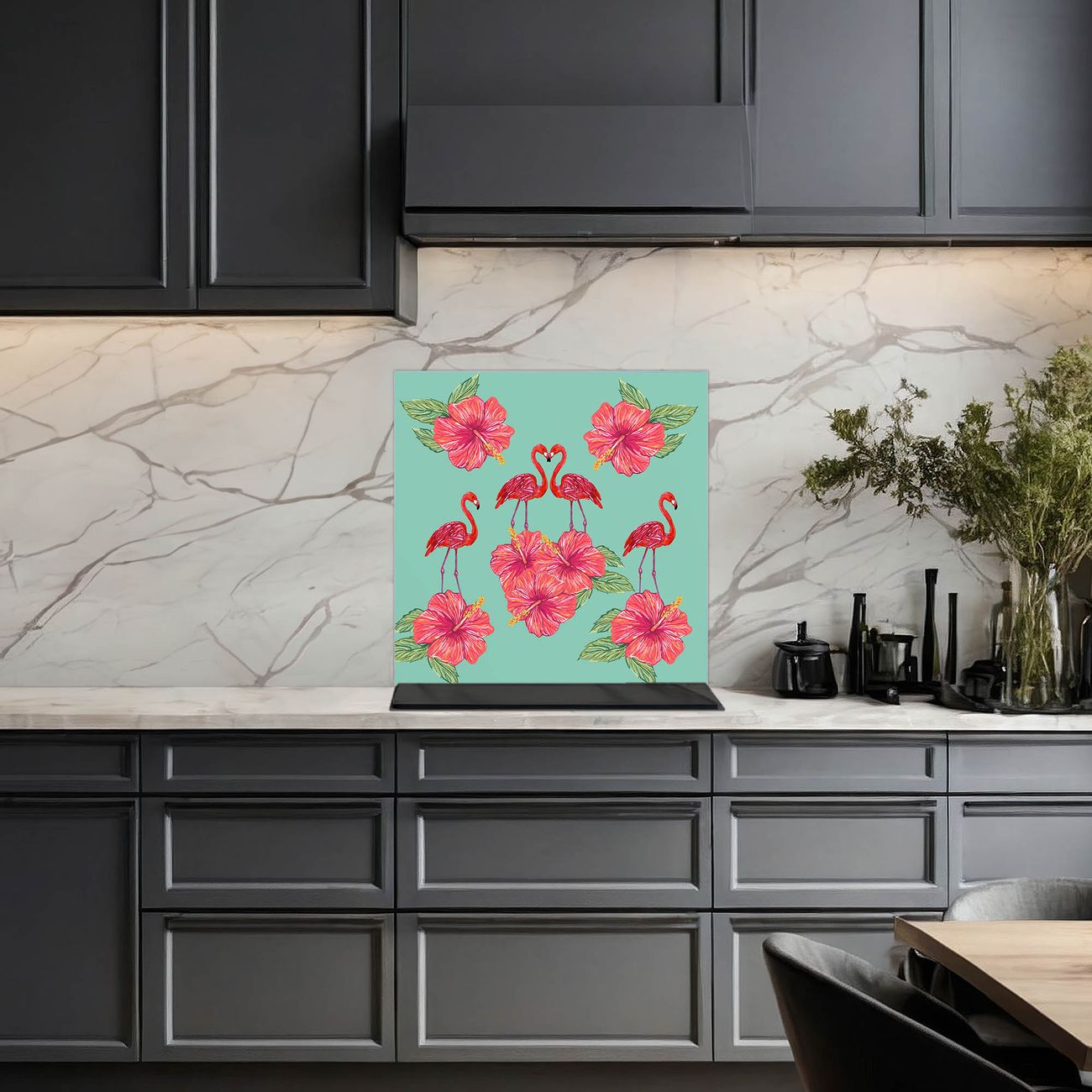 Küchenrückwand Glas Motiv Flamingo Liebe