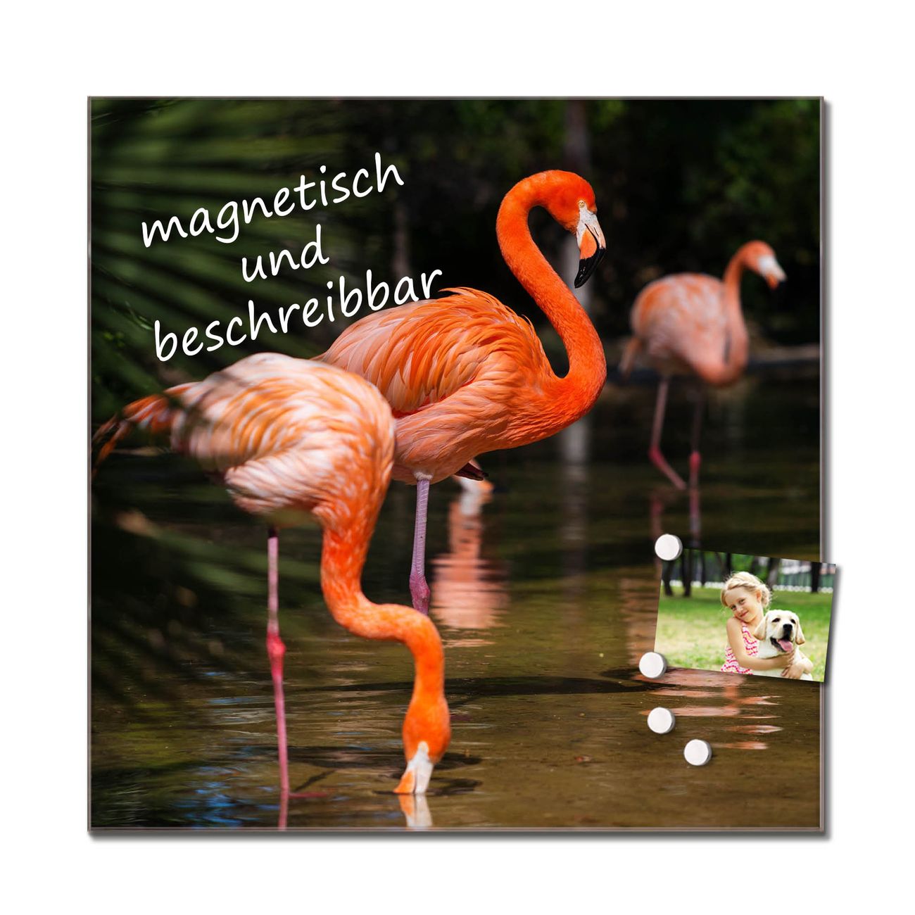 Die banjado Glas Küchenrückwand in verschiedenen Größen mit Motiv Flamingo schützt Ihre Küchenfliesen vor Fettspritzern oder Wasserflecken. Der Spritzschutz ist gleichzeitig magnetisch und hält Ihre Rezepte oder Einkaufslisten. 4 Neodym-Magnete und 1 Kreidestift liegen bereits bei. Leuchtende Motive und hochwertiges Material machen den Spritzschutz zum Designobjekt. Das dekorative Glasbild gibt Ihrer Küche ein individuelles Erscheinungsbild. Abgerundete Kanten und Sicherheitsglas sorgen für einen sicheren Einsatz.