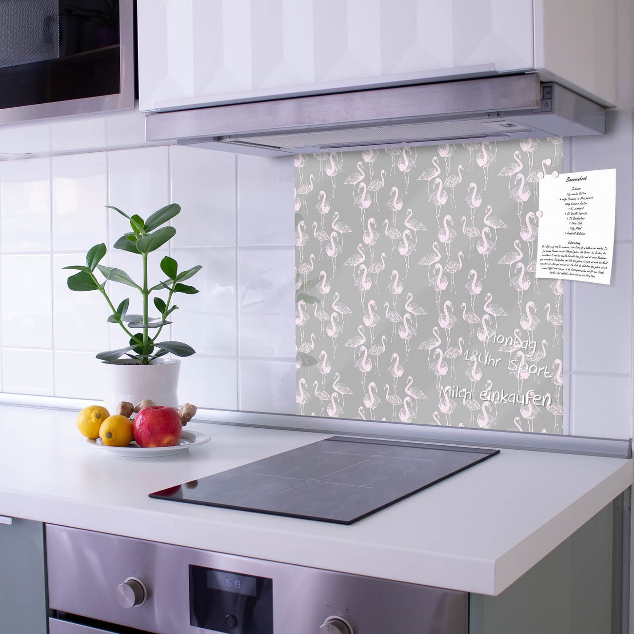Die banjado Glas Küchenrückwand in verschiedenen Größen mit Motiv Flamingos Blass schützt Ihre Küchenfliesen vor Fettspritzern oder Wasserflecken. Der Spritzschutz ist gleichzeitig magnetisch und hält Ihre Rezepte oder Einkaufslisten. 4 Neodym-Magnete und 1 Kreidestift liegen bereits bei. Leuchtende Motive und hochwertiges Material machen den Spritzschutz zum Designobjekt. Das dekorative Glasbild gibt Ihrer Küche ein individuelles Erscheinungsbild. Abgerundete Kanten und Sicherheitsglas sorgen für einen sicheren Einsatz.