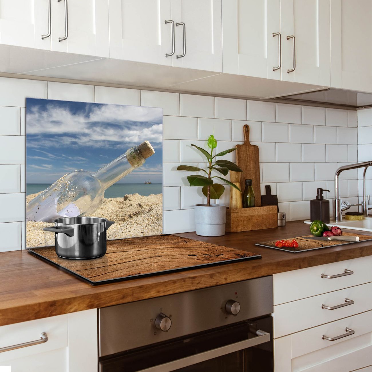 Küchenrückwand Glas Motiv Flaschenpost