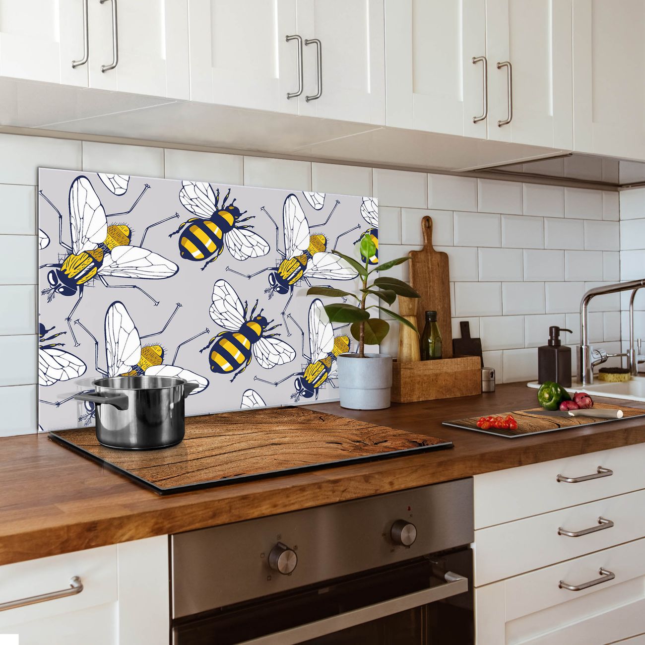 Küchenrückwand Glas Motiv Fliegen und Bienen